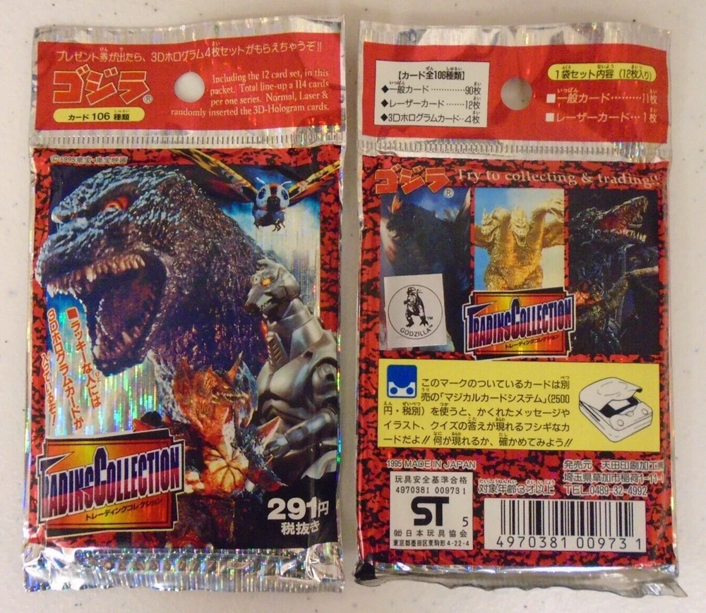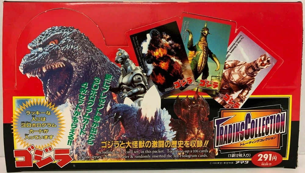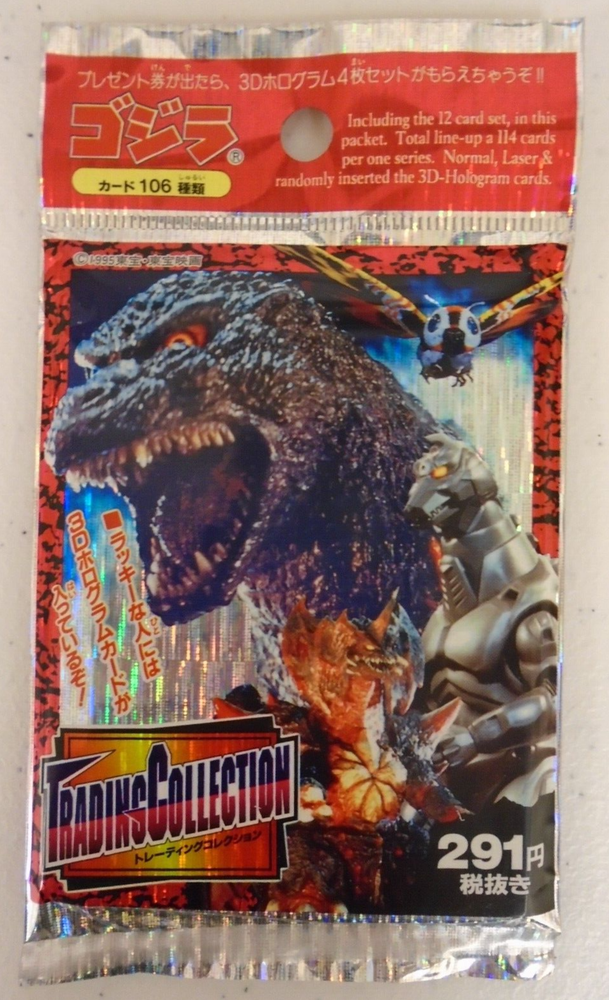 AMADA GODZILLA 1995 TRADING COLLECTION CARD 12 CARD PER PACK 3D HOLOGRAM INSERTS Description: NEW FACTORY SEALED This listing is for (1) AMADA 1995 GODZILLA TRADING COLLECTION CARD PACK . Item is new, factory sealed, and in excellent condition pulled from factory sealed box. Please refer to gallery photos. Item will be shipped in secure package. Be sure to check our ebay store for more items. PAYMENT Payment by paypal must be made at the time of purchase. California residents pay local sales tax. SHIPPING Combined shipping available for items purchased within 1 day of first purchase. Payment must be made with a single payment. Use the shipping options page to check the shipping costs BEFORE bidding on an item. Email if shipping does not show up. US Buyers : PO Boxes, AK, HI, and APO/FPO addresses must use USPS mail option. International Buyers If paying for multiple items, do not pay until you have received a shipping quote. Item will be shipped via Priority or Express mail. Full value will be listed on customs form. Import duties, taxes and charges are not included in the item price or shipping charges. These charges are the buyer's responsibility. Please check with your country's customs office to determine what these additional costs will be prior to bidding/buying. 2XSTR 02/13/24 0XSTR 10/01/24 WS (FLOOR)