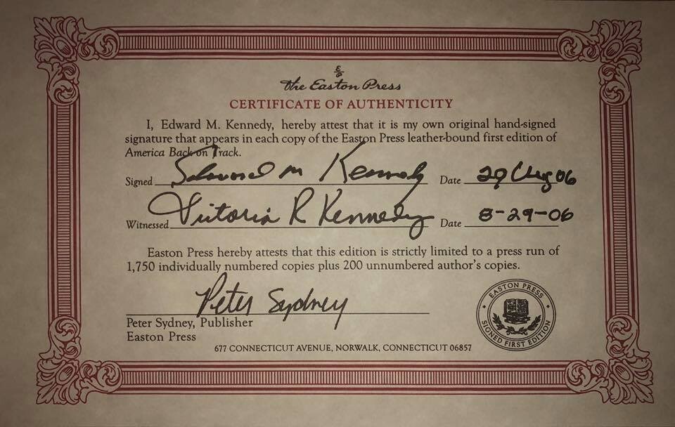 AMERICA BACK ON TRACK SIGNED BY EDWARD KENNEDY FIRST EDITION EASTON PRESS