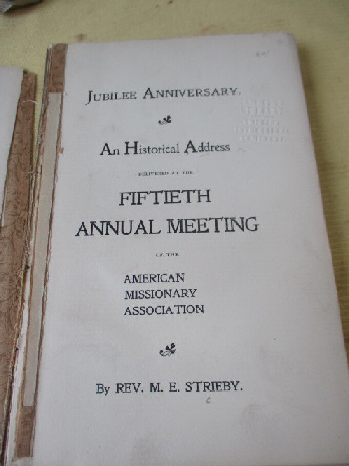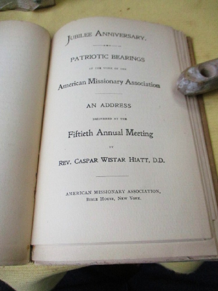 ge285. An Historical Address, by Rev. M.E.Strieby & Rev. Caspar Wistar Hiatt, DD. Pub. American Missionary Society, NY, 1896. 12mo, approx. 200 pages. Speeches bound-in. Linen spine, front cover is detached along with 2 loose pages (first front end paper and title page). X-Library. Acceptable condition. Do not hesitate to e-mail with any questions. As Always, Satisfaction Guaranteed! I expect to receive payment within 10 days, unless we have made other arrangements. Shipping will be USPS Media or First Class, depending on weight. If you prefer Priority mail, I will be glad to make the adjustment. I'm glad to combine multiple purchases in order to minimize shipping costs. I WILL SHIP INTERNATIONALLY, and I try to be as economical as possible with the shipping costs. RETURN POLICY: Satisfaction Guaranteed! Track Page Views With Auctiva's FREE Counter