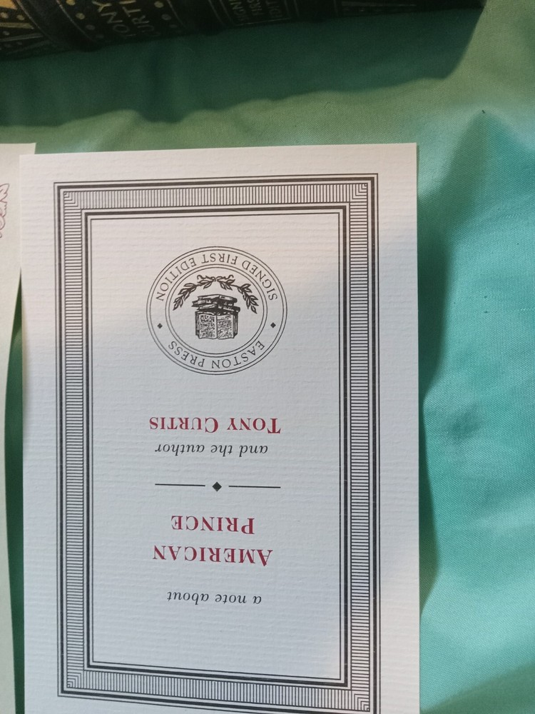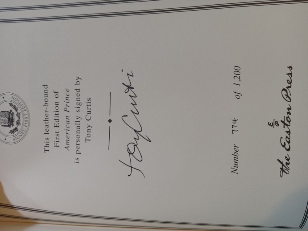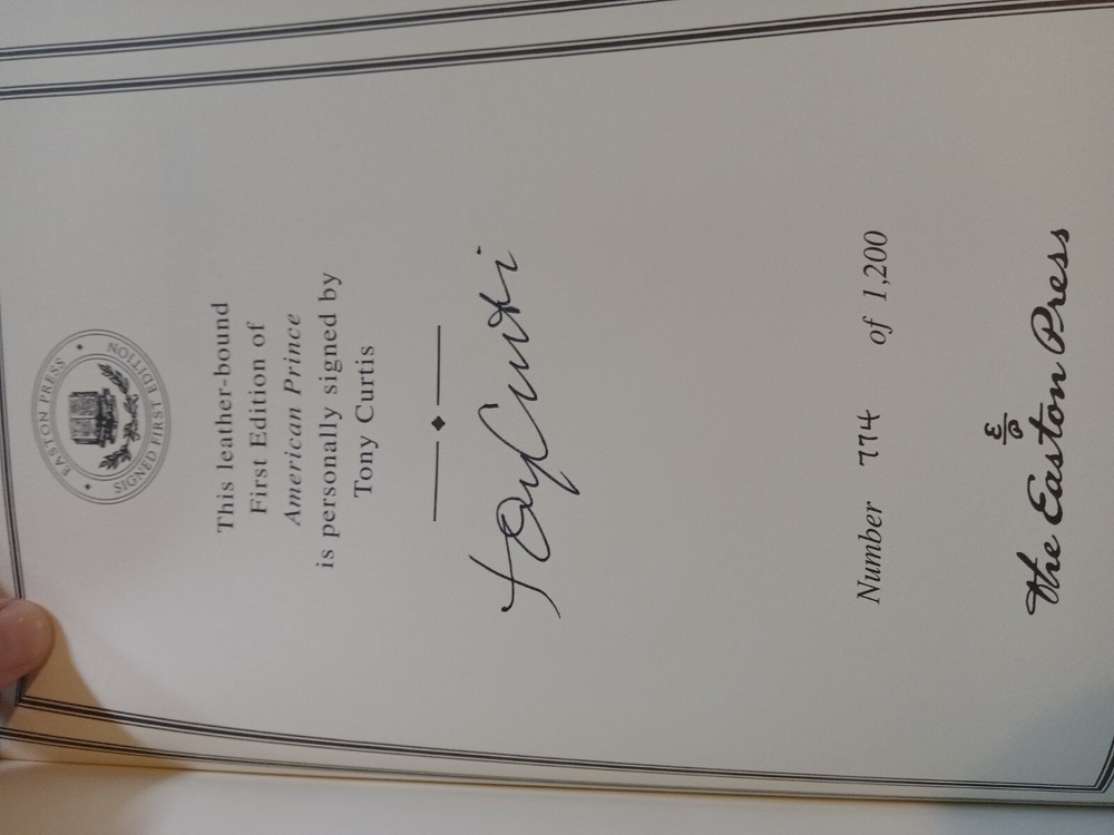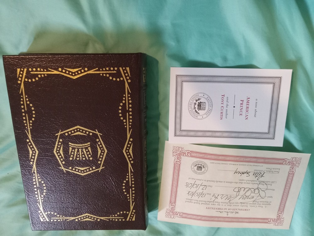 This is a luxury and limited edition of the biography "American Prince" by Tony Curtis, published by Easton Press. The book is a first edition and is signed by the author, with only 1,200 copies printed. It features leather binding and is illustrated. The book is categorized as Antiquarian & Collectible and Books & Magazines.