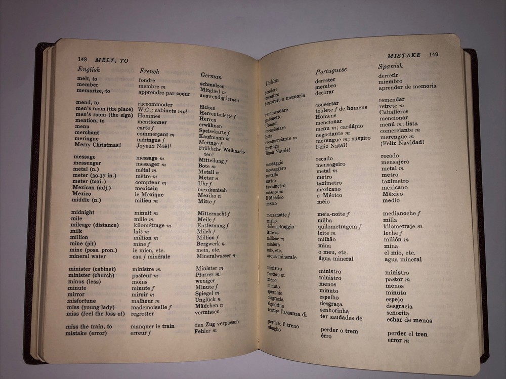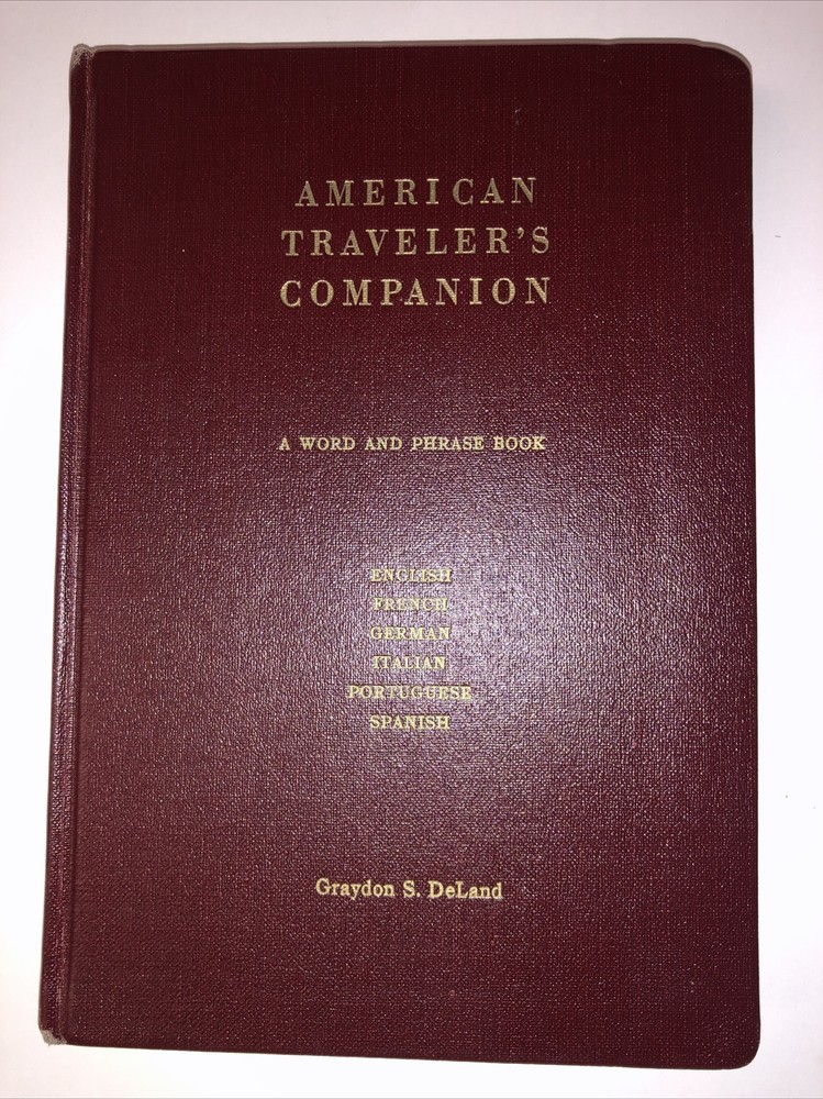 AMERICAN TRAVELER'S COMPANION (1959) DeLand Multi-Language Word and Phrase Book. Very Good Condition. This is a word and phrase book in English, French, German, Italian, Portuguese, and Spanish. It has clean pages with pen writing on the last pages in the note section.