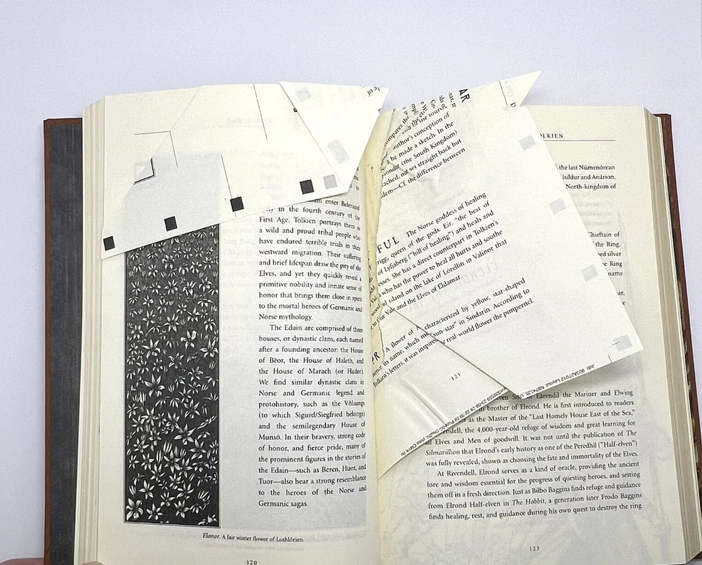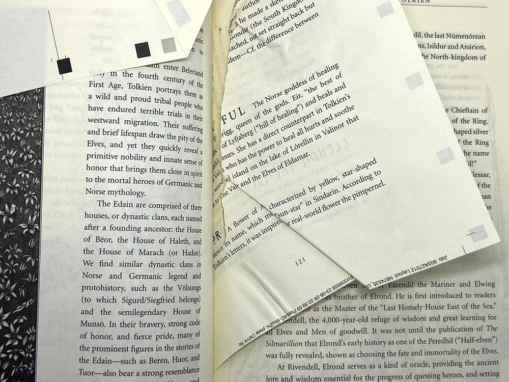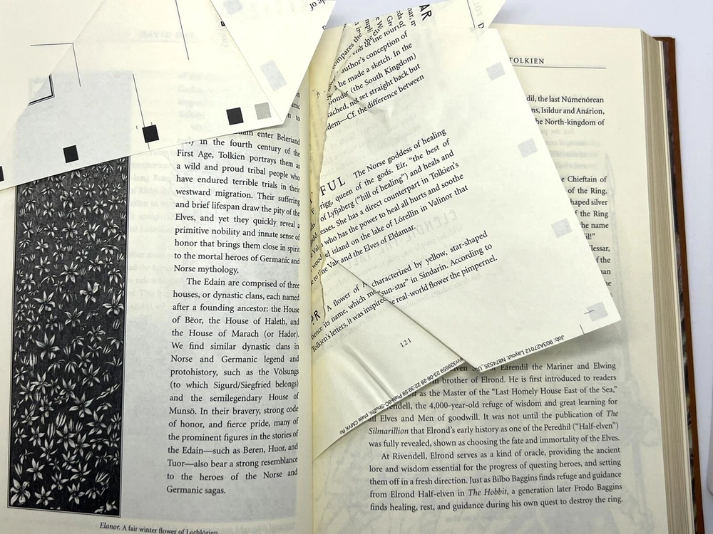 AN ENCYCLOPEDIA OF TOLKIEN by David Day ~ Deluxe Leather Bound Illustrated NEW ~ Manufacture defect of pages 119-122 (pictured). Free Shipping from Salt Lake City, Utah....