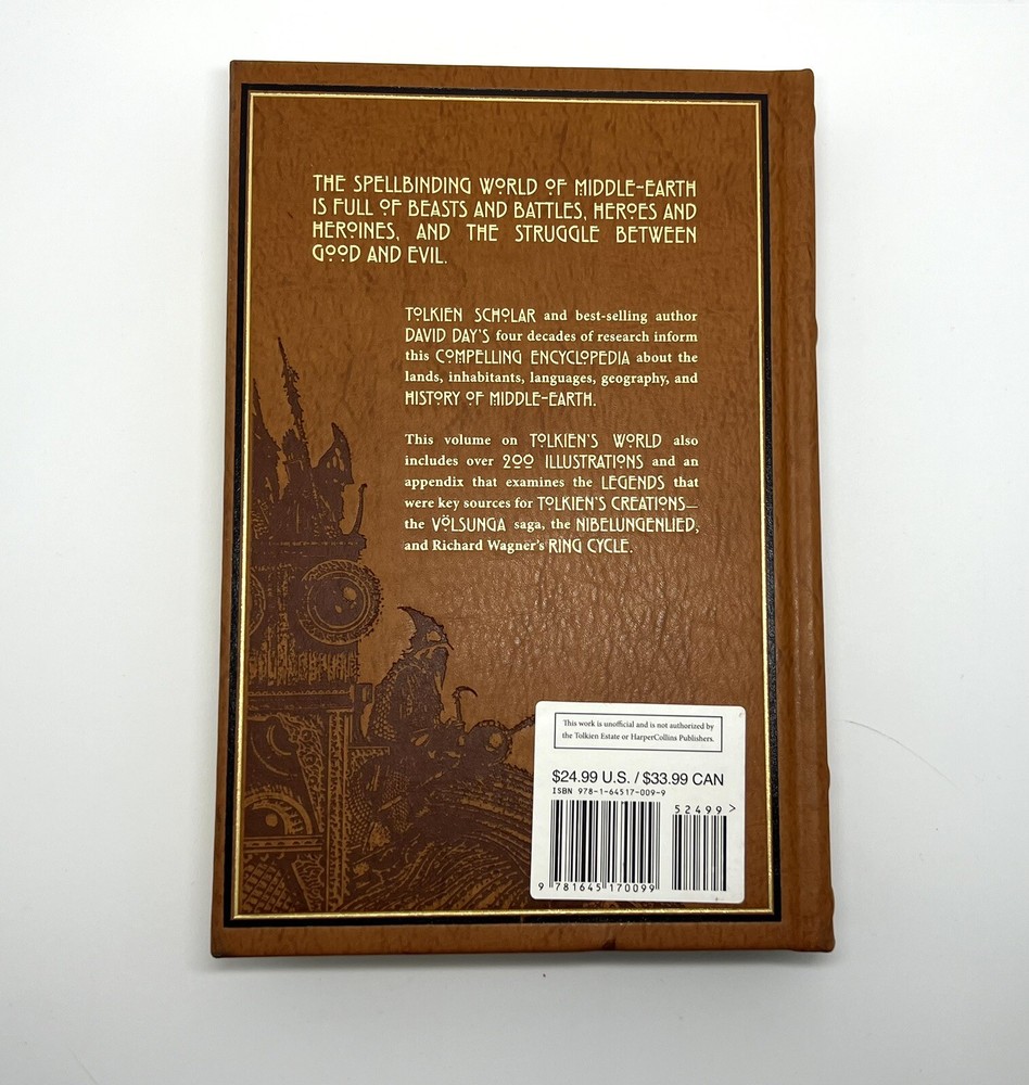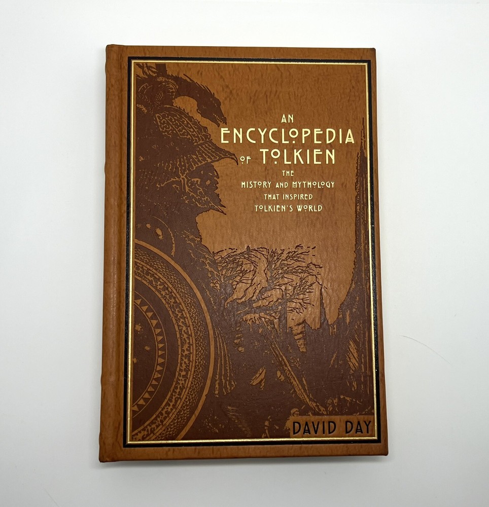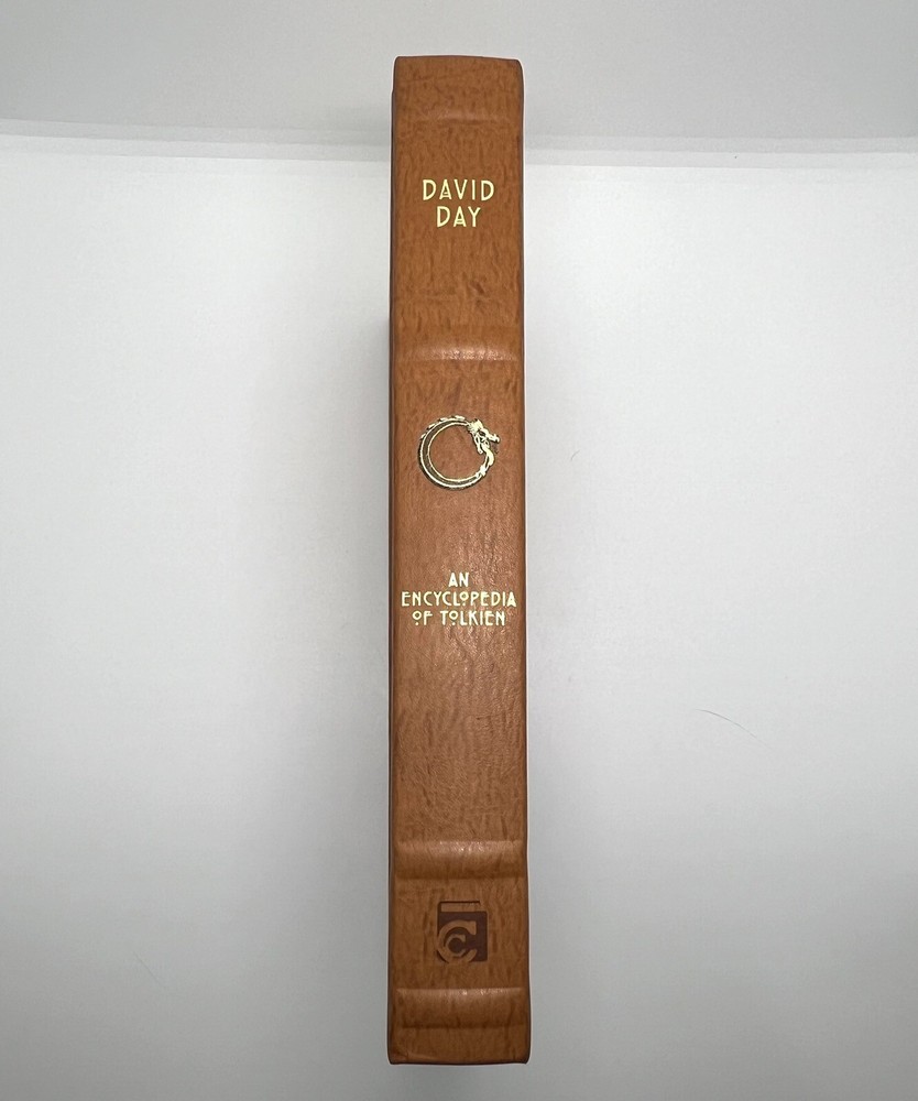 AN ENCYCLOPEDIA OF TOLKIEN by David Day ~ Deluxe Leather Bound Illustrated NEW ~ Manufacture defect of pages 119-122 (pictured). Free Shipping from Salt Lake City, Utah.