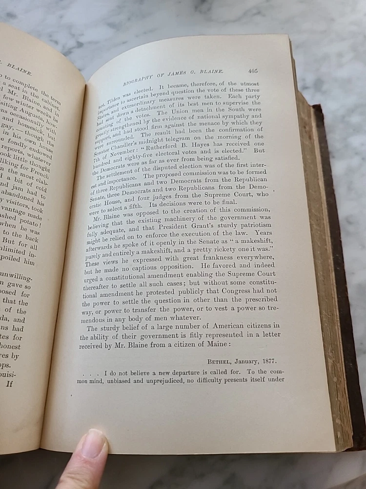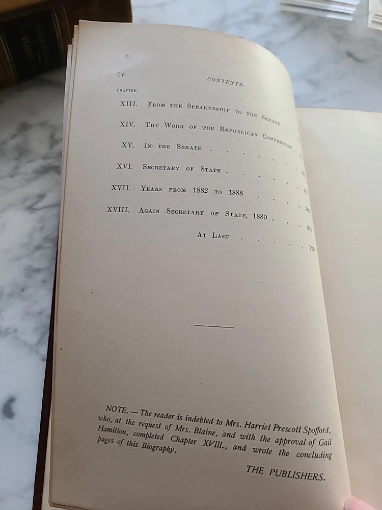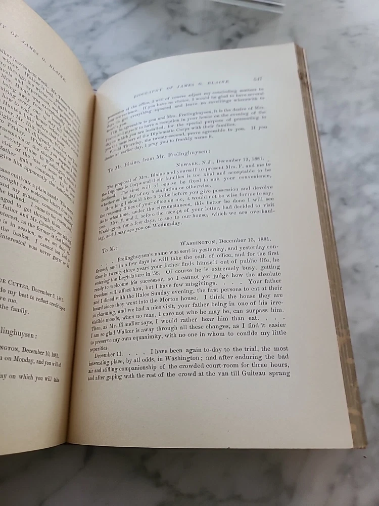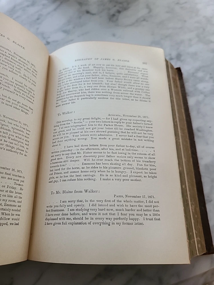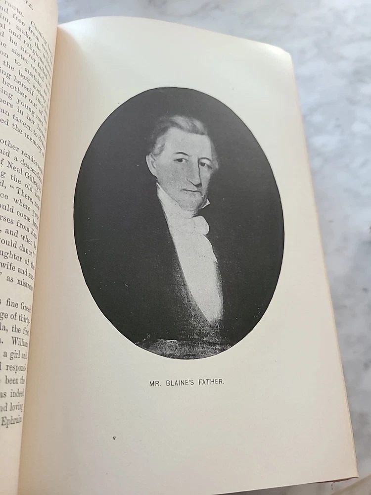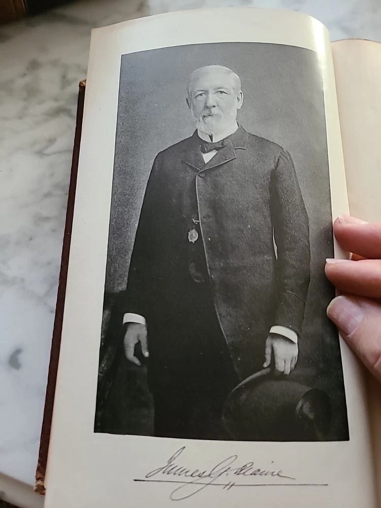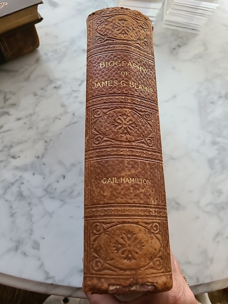1895 LEATHER BOUND BOOK, BIOGRAPHY OF JAMES G. BLAINE BY GAIL HAMILTON. NORWICH, CONN. THE HENRY BILL PUBLISHING COMPANY. PAGES ARE ALL IN AMAZING CONDITION. BEAUTIFUL BOOK....
