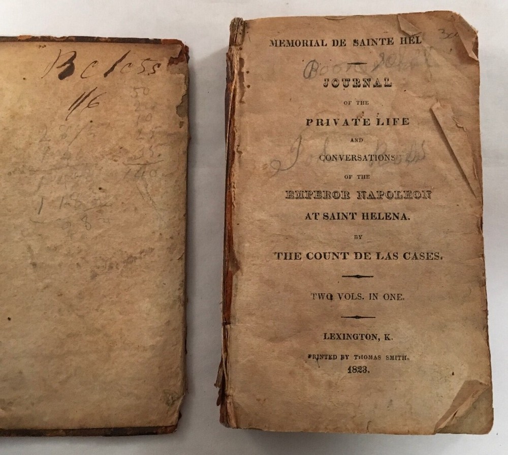The Count de las Cases, Journal of the Private Life and Conversations of the Emperor Napoleon at Saint Helena (Lexington, Kentucky: 1823) 394pp 7.1/4 inches high
