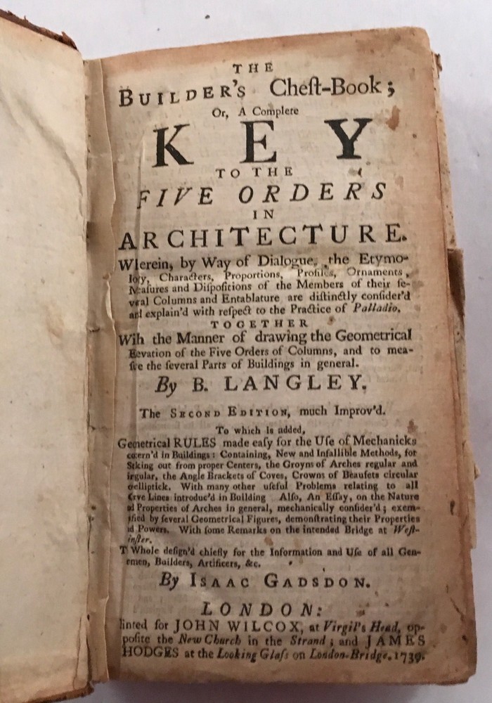 Batty Langley, The Builder's Chest-Book (London: 1739), 2nd edition 6.7/8 inches high...