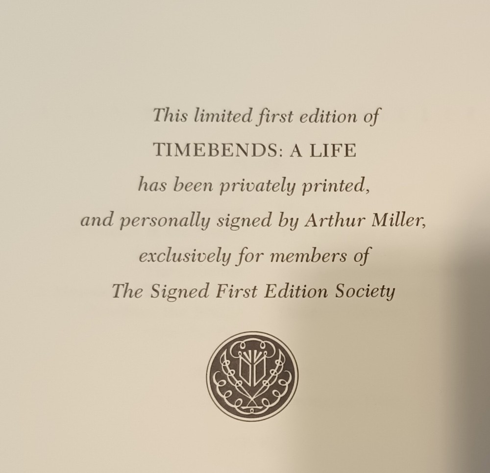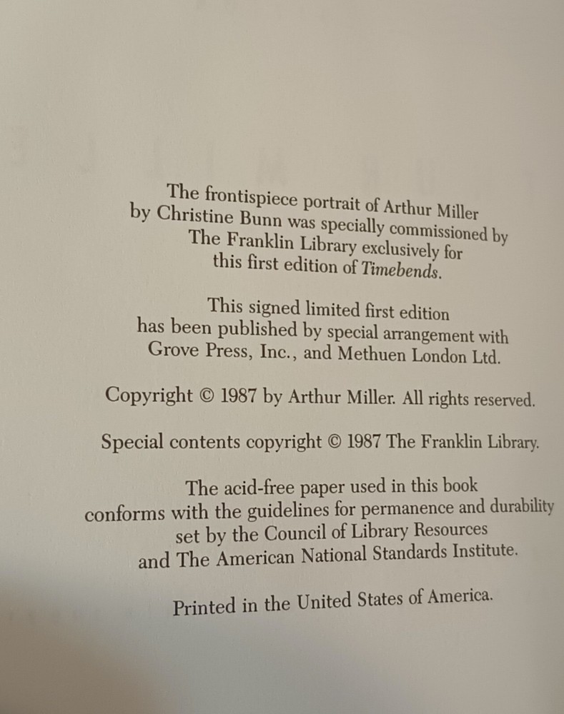 ARTHUR MILLER Timebends A Life Book Franklin Library 1st Ed SIGNED Leather 1987 Smoke free home...