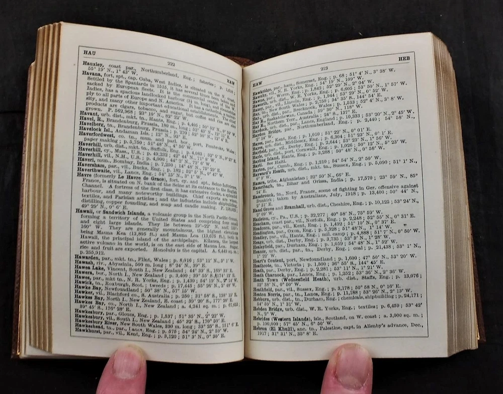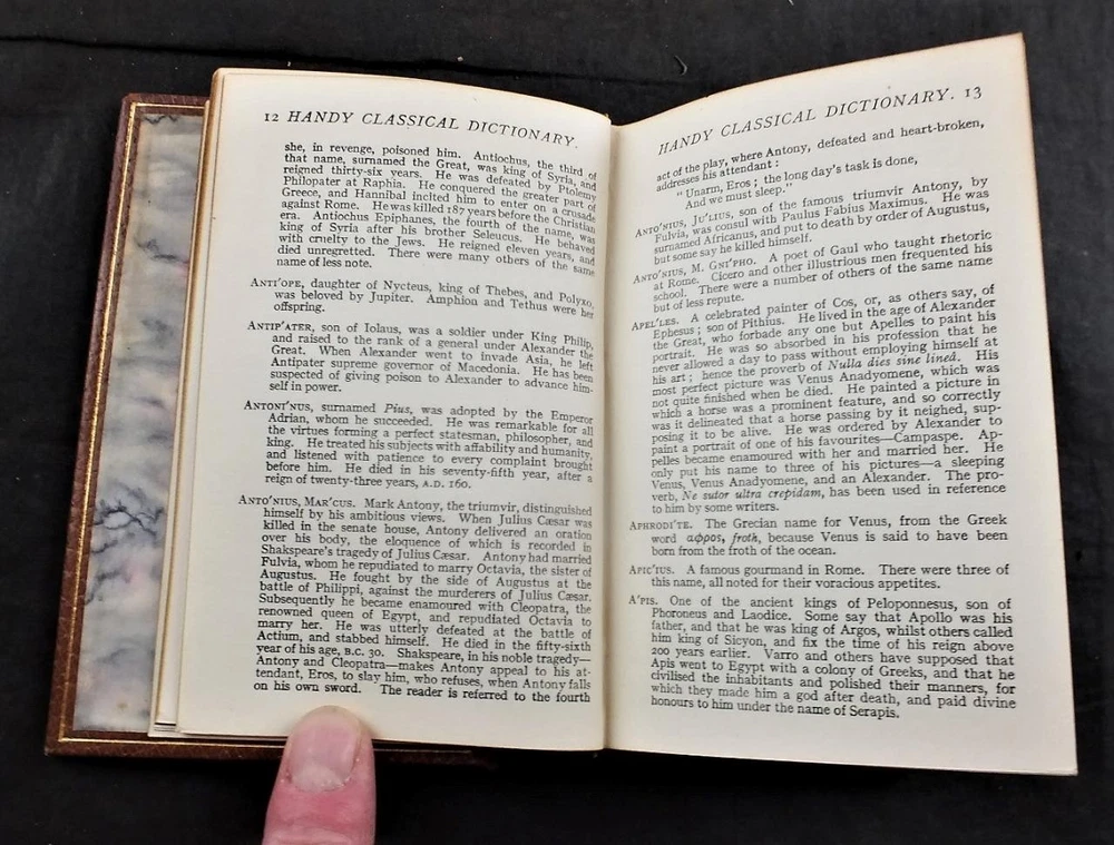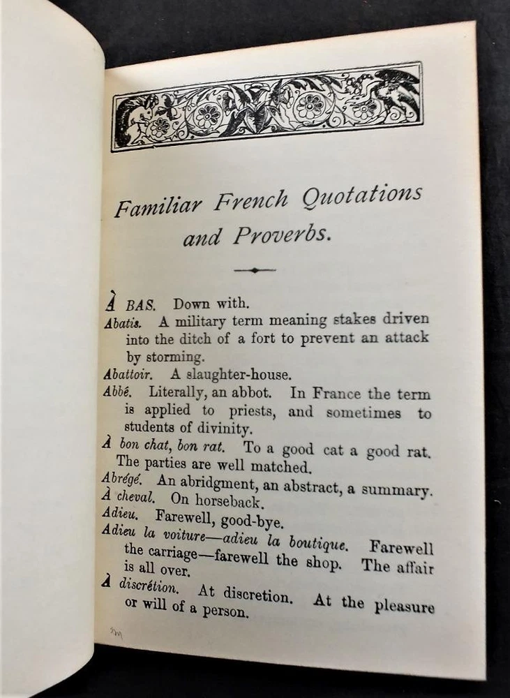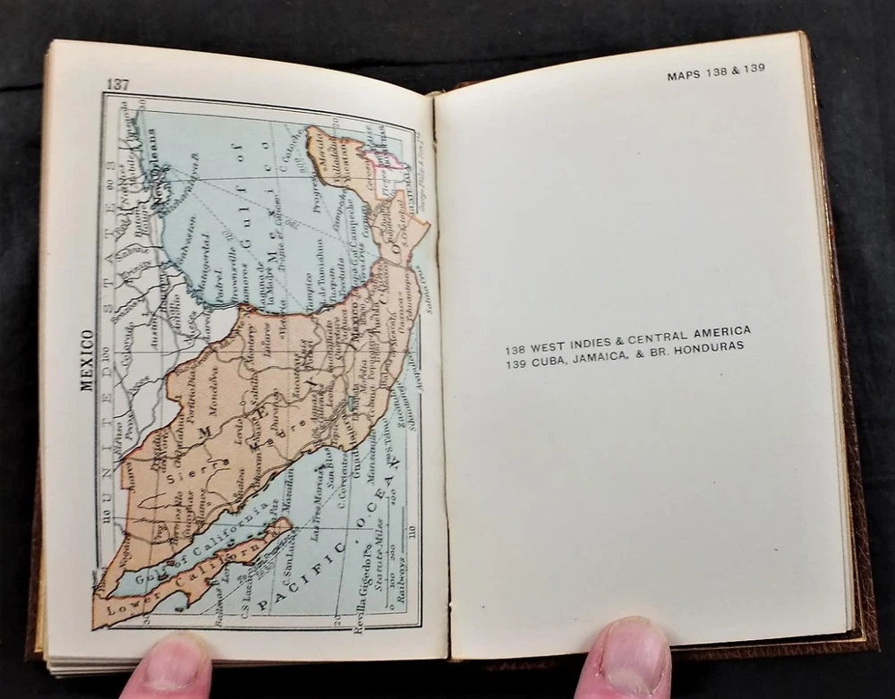Essentially a very complete set with the folding plates chromolithos and panoramas intact ASPREY'S DESK LIBRARY Atlas dictionary gazetteer MOROCCO BOUND in original rack ASPREY'S DESK LIBRARY Atlas dictionary gazetteer MOROCCO BOUND in original rack Click images to enlarge Description ASPREY'S REFERENCE LIBRARY The full set of 8 volumes in the original bookstand, designed to sit on the desk. Dictionary, French/English Dictionary, Gazetteer, English Quotations, French and Latin Quotations, Atlas with full colour maps, Encyclopaedia, and Classics. Uniformly bound in gilt lined brown morocco, titles gilt, all edges gilt. The dictionary approx 15cm x 8.5cm, the other books all approx 12.5cm x 8cm. The whole standing approx 19cm high and 20cm wide. All in very good solid condition, some occasional foxing to the contents. The text blocks to the gazetteer and dictionary have at some point come loose from the case, and are now held in with a historic glue repair, and sit a little off centre, the tailband showing below the spine of the gazetteer, and they are split along both internal hinges. Morocco covers are solid but a touch dry, with some minor loss of surface to the heads and tails. Get images that make Supersized seem small. Showcase your items with Auctiva's Listing Templates! THE simple solution for eBay sellers. Track Page Views With Auctiva's Counter