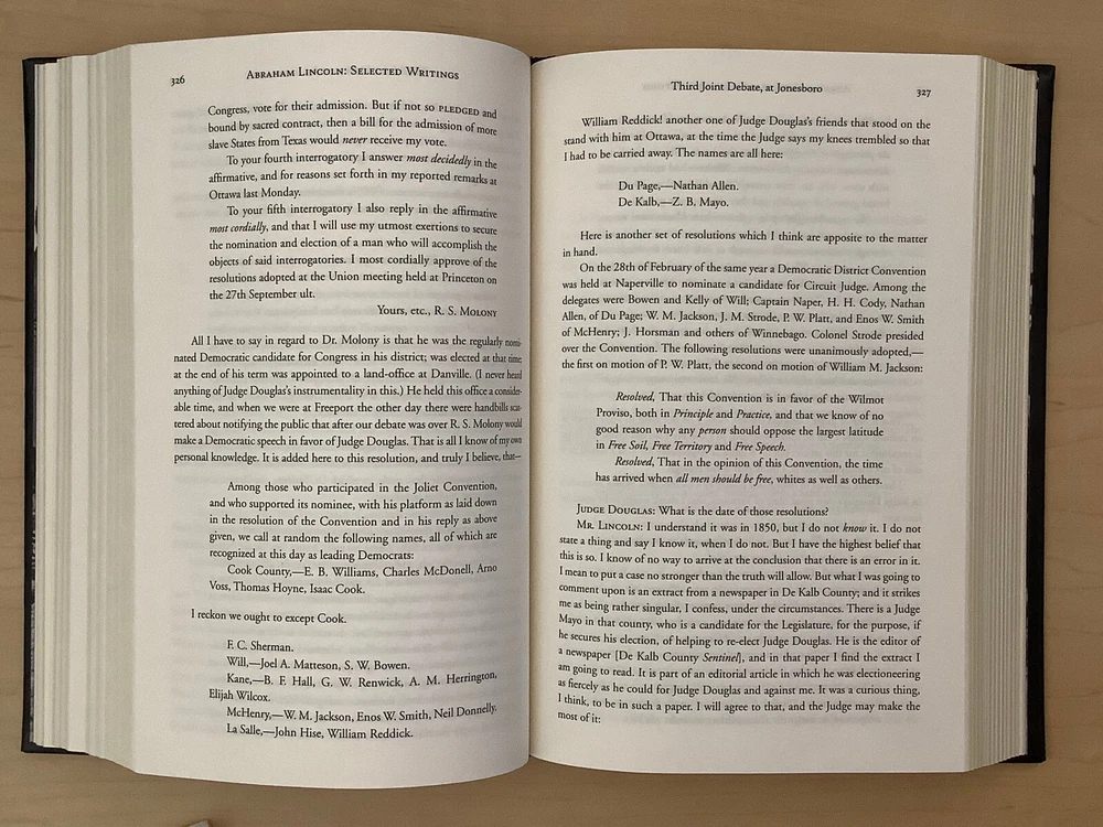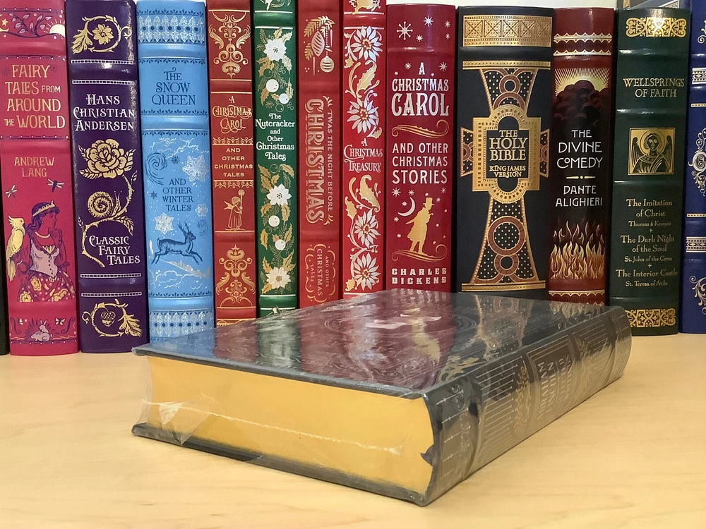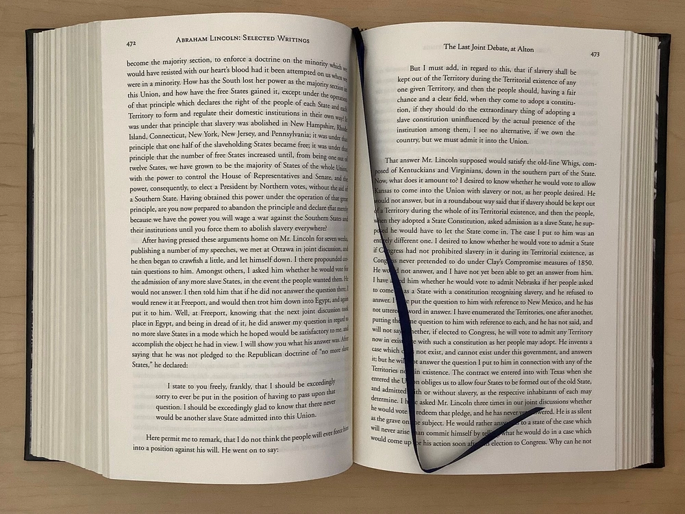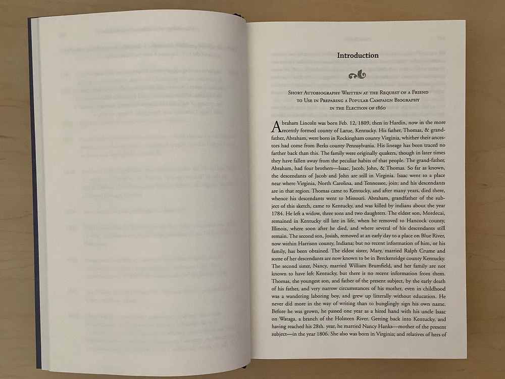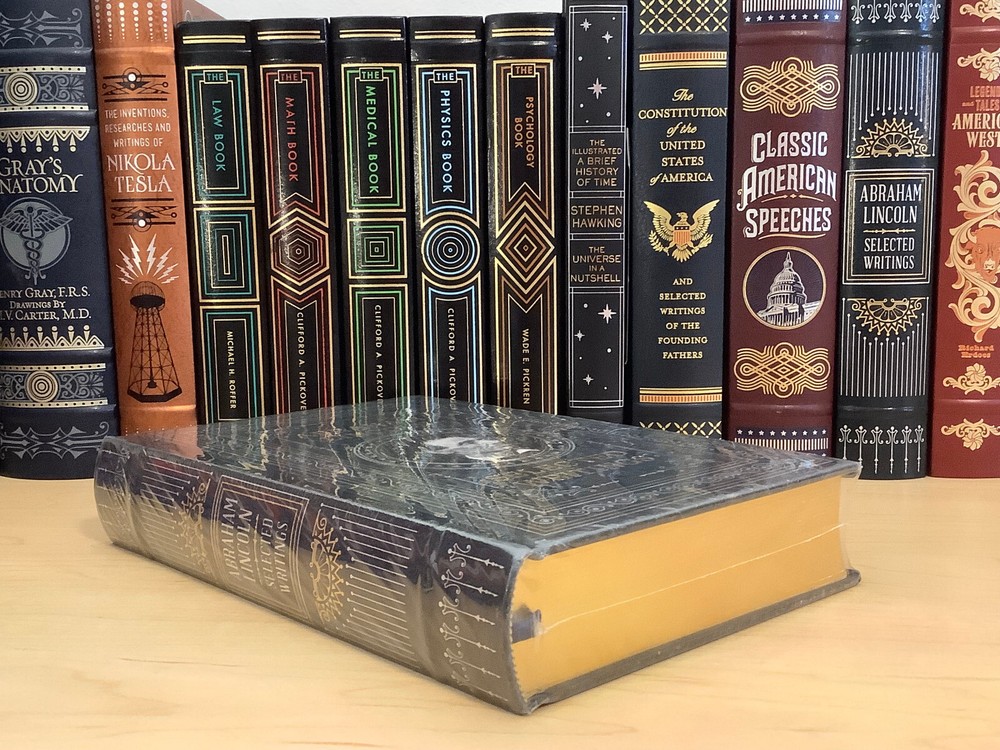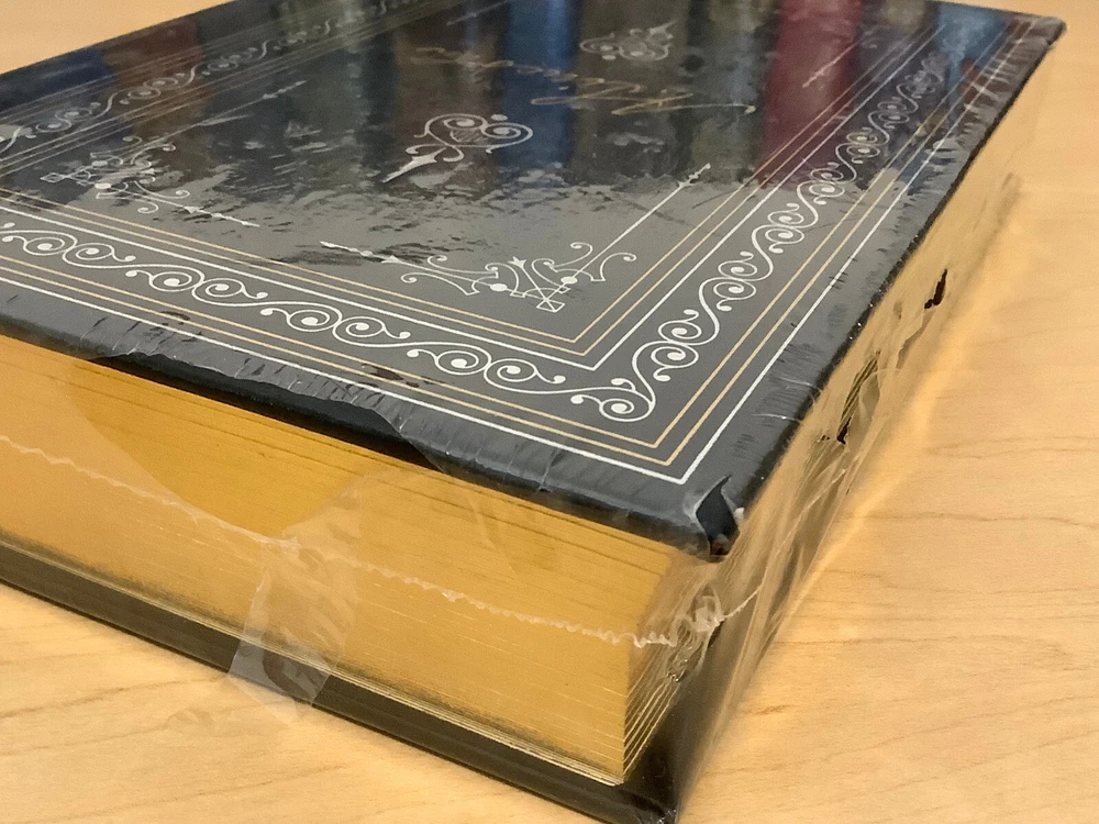 Abraham Lincoln – Selected Writings bound in leather, with gilt edged pages and a ribbon marker Item Condition: This is a leatherbound hardcover, sealed. The seal is open in areas, and there are flaws in the gilt page edging. The leather at the corners and spine have light rubbing and are bumped. Dimensions are approx: 9.25" x 6.25" x 1.5” This book will ship in a box with bubble wrap. Photos #1-9 are of the actual book that will be shipped, the rest are examples of the book from an open copy.