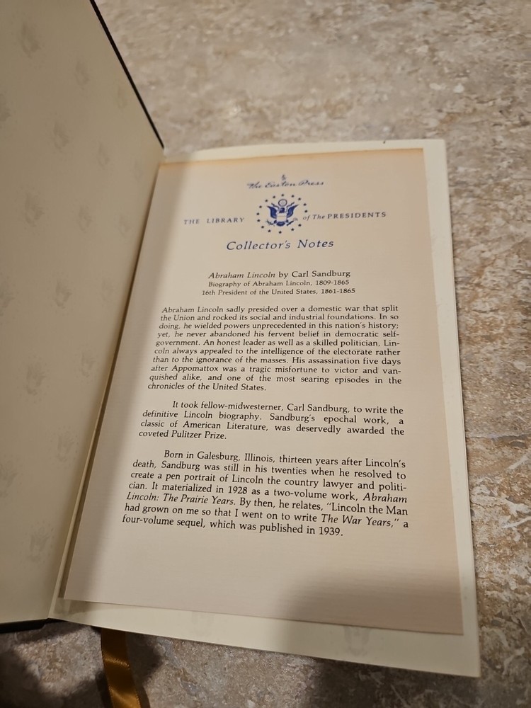 Abraham Lincoln by Carl Sandburg is a comprehensive and detailed biography of the 16th President of the United States. This one-volume edition is bound in leather and published by Easton Press, making it a valuable addition to any collection of historical biographies. The book covers various topics related to Lincoln's life, including his political career, personal life, and assassination. It is a must-read for anyone interested in American history and the life of one of its most iconic figures.