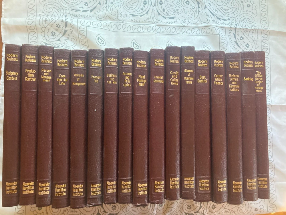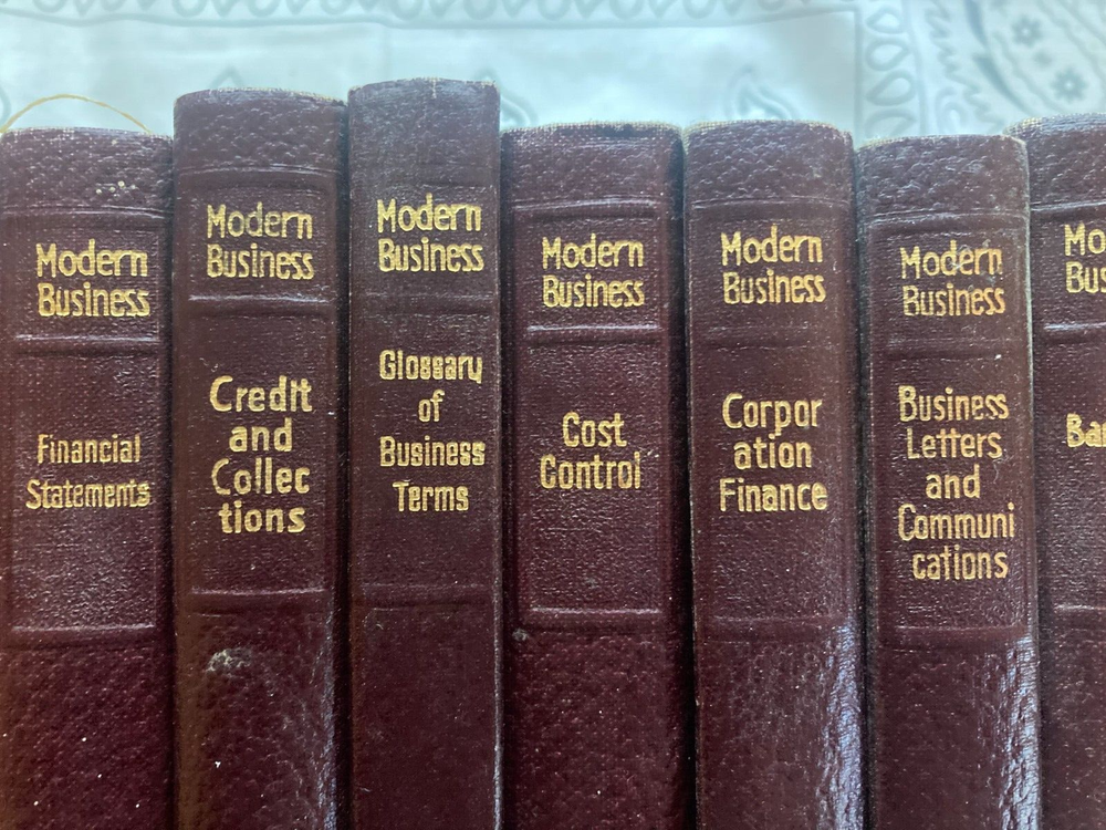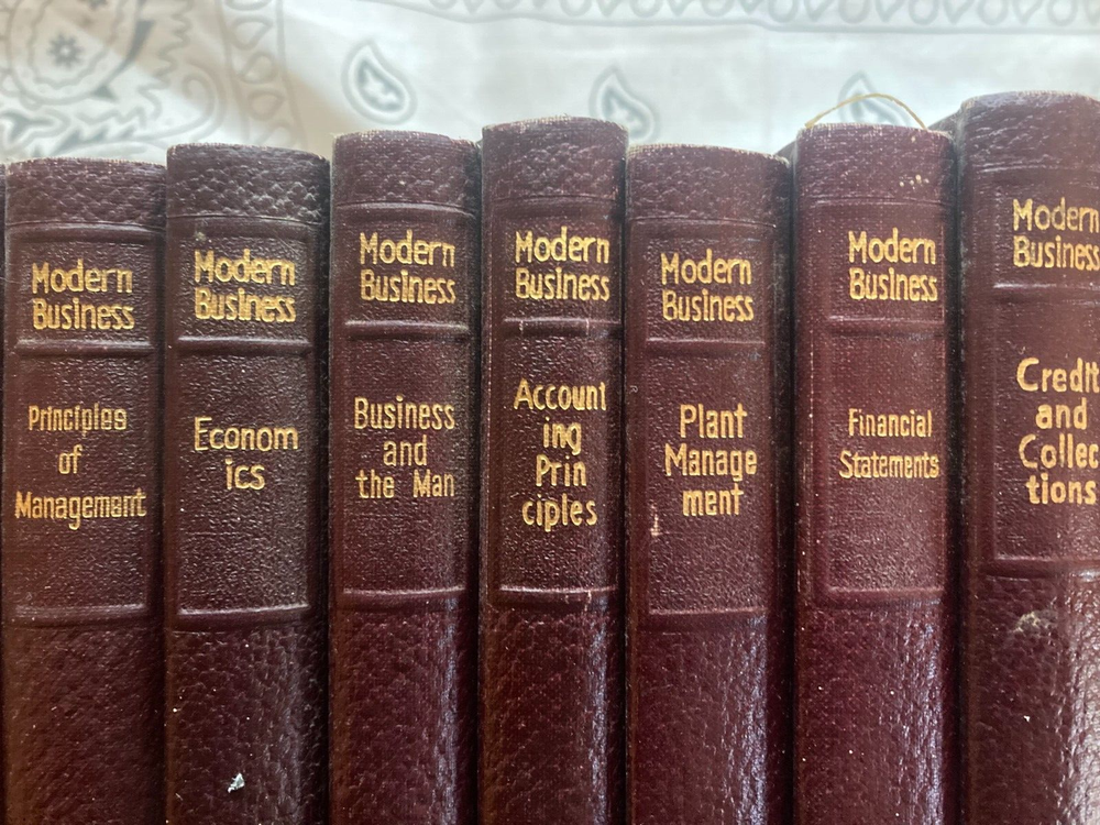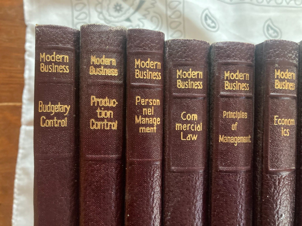 Hi there! These books are in very good condition! See photos for details. Comes with 17 Modern Business books: Modern Business Personnel Management Modern Business Budgetary Control Modern Business Production Control Modern Business Principles of Management Modern Business Commercial Law Modern Business Credit and Collections Modern Business Financial Statements Modern Business Office Nerve Center Of Management Modern Business Corporation Finance Modern Business Plant Management Modern Business Cost Control Modern Business Accounting Principles Modern Business Banking Modern Business Economics Modern Business Business And The Man Modern Business Glossary Of Business Terms Modern Business Business Letters and Communications If you have any questions, please feel free to ask me, Thank you for viewing this product!