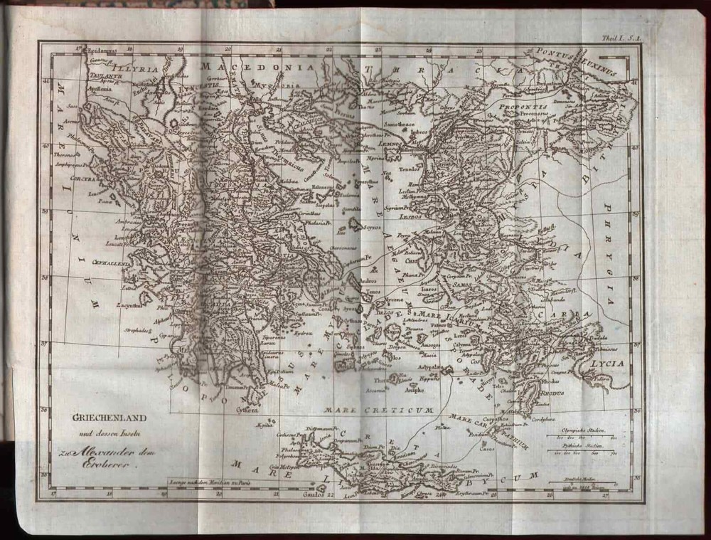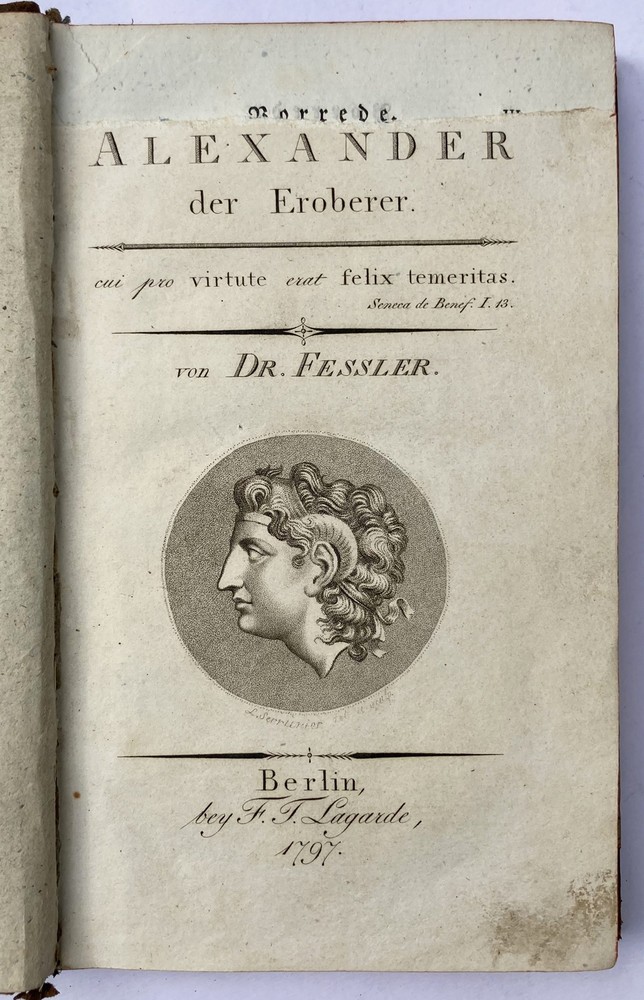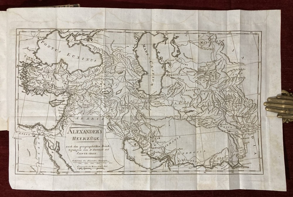 This early German edition of Alexander the Great’s biography by Ignaz Aurelius Fessler is a fantastic find for history lovers! The original half-leather binding with gilt-stamped spine gives it a classic, elegant look, and the two engraved maps add great historical value. Despite minor wear, the book remains in solid condition, making it a perfect piece for collectors. The detailed account of Alexander’s conquests is engaging and well-researched, offering deep insights into his legendary life. A must-have for anyone passionate about ancient history!