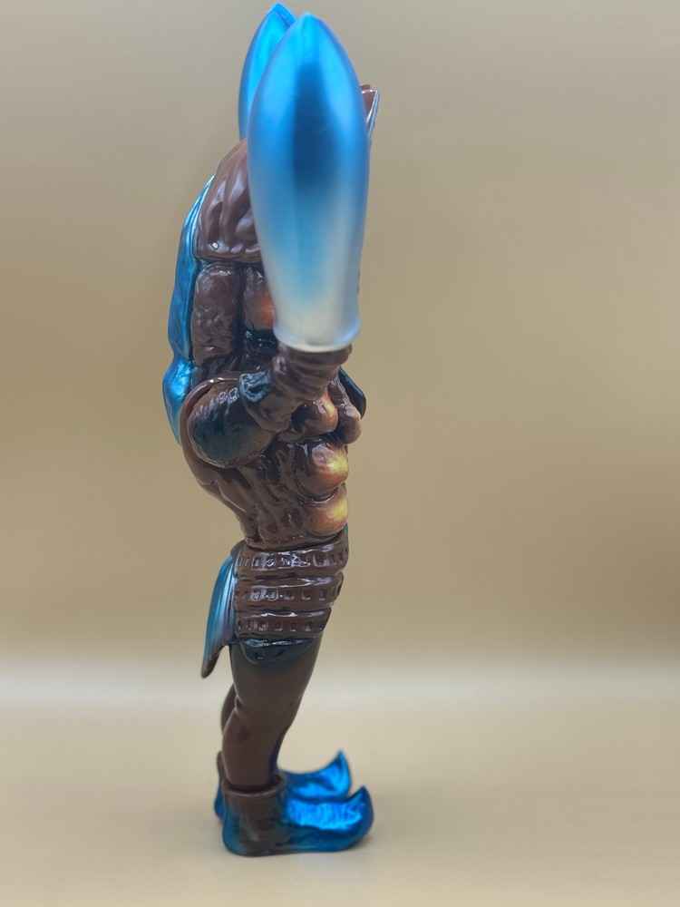 Ultraman's most notorious advesary, Alien Baltan, was a natural fit with the sculpting styles of Hong Kong's premier sofubi maker, Planet-X Asia. This 2022 release spors a unique colorway that is truly magnificent. Baltan stands nearly 10" tall and comes with a beautiful header card that was illustrated by world-renowned kaiju artist, Matt Frank. This rare piece is one of the best from Planet-X's Tsuburaya offerings. Comes with original header and bag.