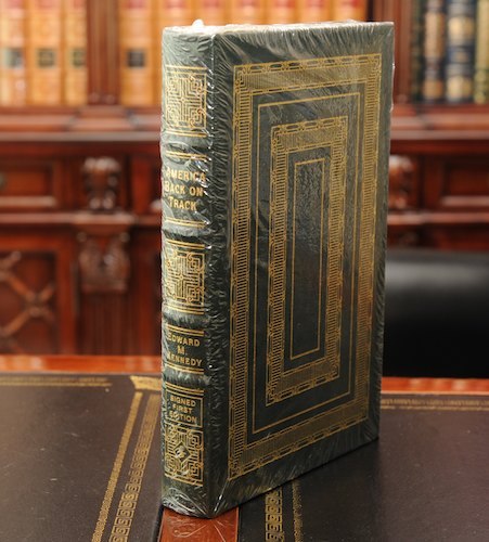 Easton Press Full Genuine Leather AMERICA BACK ON TRACK Personally signed by the late Senator Edward M. Kennedy Signed First Edition and numbered. Book comes with Certificate Of Authenticity issued by Easton Press Brand New Sealed In Publisher Original Shrink Wrap Mint Condition - Never Been Read The cloudy spot in the picture is the camera's flash reflecting against the shrink wrap. I guarantee authenticity on all of the products I sell on eBay. All of my items come from a clean, smoke and pet free home. * Genuine Leather * Silk Moire Endleaves * Distinctive Cover Design * Hubbed Spine, Accented in Real 22KT Gold * Satin Ribbon Page Marker * Gilded Page Edges * Long-lasting, High Quality Acid-neutral Paper * Smyth-sewn Pages for Strength and Durability * Beautiful Illustrations The First Edition of a major new book is a moment in history that happens only once. You will receive an important new First Edition signed and numbered by its author. Generally no more than 1,500 copies are produced, never to be issued again! Book comes with original certificate of authenticity and documentation shrink wrapped inside the book as normally sent from Easton Press. Buy Easton Press Signed Limited Edition and never wonder again if the signature on your book is authentic! FAST SHIPPING This item will be packed to the highest standard, surrounded in bubble wrap, and enclosed in a strong box to ensure safe delivery. We do combine shipping to save you money Happy Bidding & Good Luck! Terms and Conditions: Winner must contact me within 48 hours after auction close to inform us what type of payment will be sent. Payment is due within 5 days of auction close. BIDDERS WITH ZERO OR WITH EXTENSIVE NEGATIVE FEEDBACK PLEASE CONTACT ME FIRST, OTHERWISE BID WILL BE CANCELLED. Payment Options: PayPal.