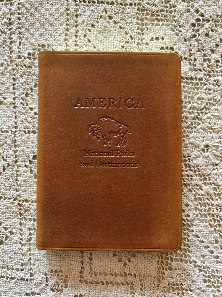 Explore the stunning beauty of America's natural landscapes with this exquisite leather atlas book. Featuring a comprehensive list of national parks and destinations, this reference book is perfect for travel enthusiasts and nature lovers alike. The book is beautifully bound in full grain hide with gold guilded edges, adding a touch of elegance to your collection. Discover the various parks and destinations across the United States with detailed maps and informative guides. The book is in excellent condition, making it a perfect addition to your library. Whether you're planning a road trip or simply love to explore the great outdoors, this atlas book is a must-have. Thanks for shopping!