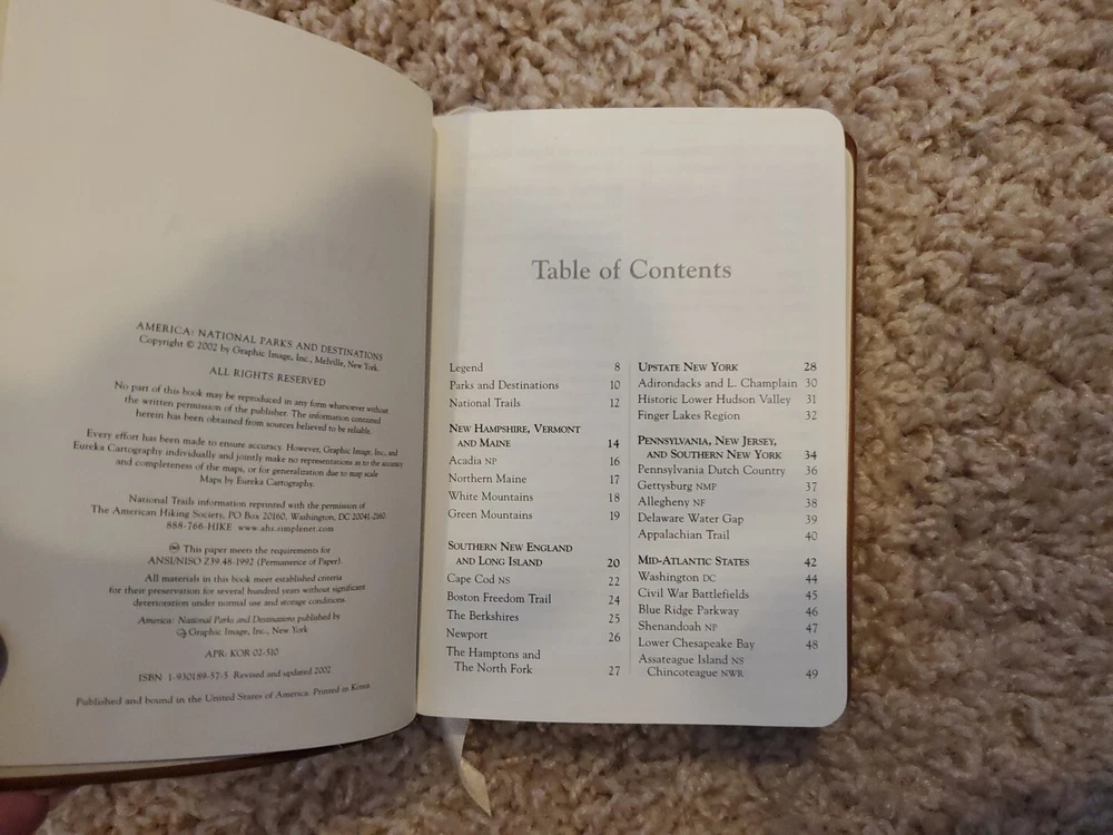 Explore the scenic beauty of America's natural wonders with this Leather Atlas Book from 2002. Discover the stunning landscapes and captivating sights of the nation's most treasured destinations. This reference book is bound in full-grain hide and features gold gilding and a map of the national parks. The book measures 6 inches in height and 4 inches in width, making it the perfect size for travel and exploration. Written in English, it is an ideal resource for anyone looking to experience the beauty of America's natural wonders. Whether you're a travel enthusiast or a history buff, this book is a must-have addition to your collection.