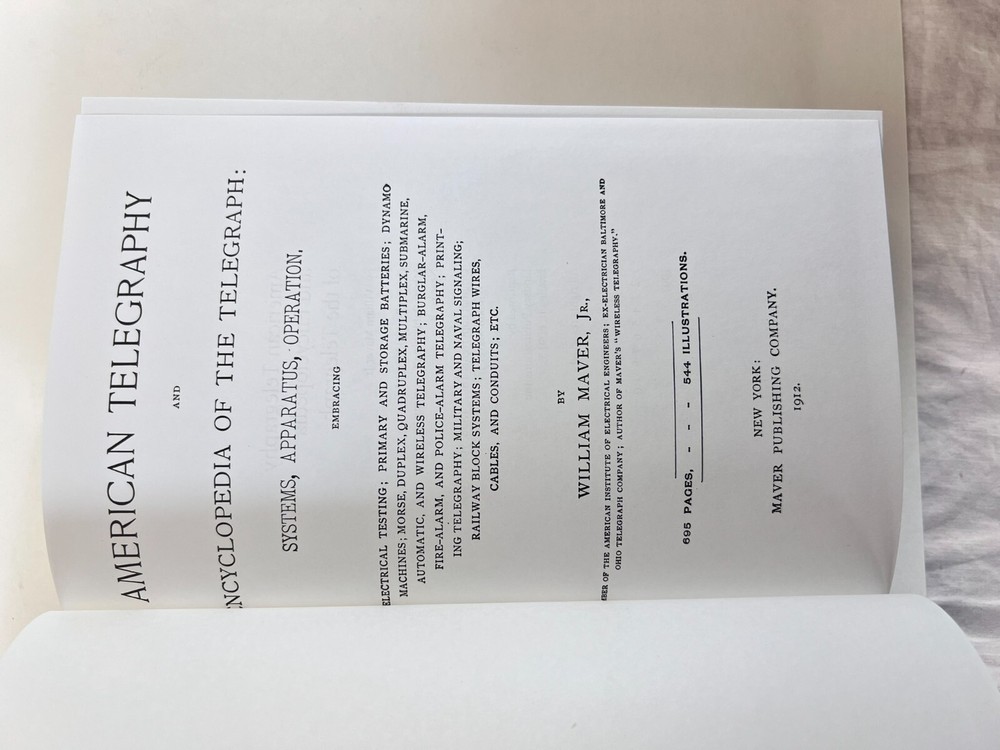 Description American Telegraphy and Encyclopedia of the Telegraph by W Maver, HB ILLUS NICE Beautiful -- LIKE NEW Payment Payment is expected within 48 hours of auction close. If payment is not received within that time, the item may be relisted. Shipping We ship within three business days after receipt of payment via USPS and UPS. Terms of Sale Every effort is made to accurately describe merchandise, including even the most minor flaws or wear due to age. Most of what I sell is vintage and many times will show normal wear due to age and use. I am not an expert, but do my best to describe items honestly and to the best of my knowledge. I strive to have your purchase not only meet, but exceed your expectations. Be sure to check my positive feedback rating. If you have any doubts or reservations, please ask questions before bidding. Your complete satisfaction is my goal. If I fail to achieve this, please contact me. Thanks for looking and bid with confidence! About Us Most of the items that I sell come from estate sales, thrift stores, or public auctions. Please do not assume that I am an expert on the items I sell or that I know what to put in my descriptions. I do my best to describe the items, and I strive to point out any known defects. I do not clean or repair my items, but I will mention if they were tested or not. My items are sold "as is" and "as found". All sales are final unless my description is grossly misrepresented.