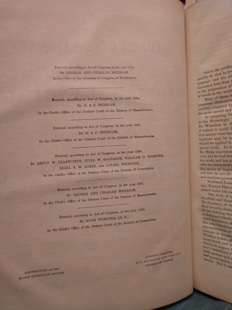 An American Dictionary of the English Language 1875 + Ready to ship! We are moving to Australia and selling most of our books, art and more. I'm the son of a bibliophile and grew up with a house stuffed to the rafters in books. Well, the apple didn't fall far from the tree. After a half century of reading, enjoying and collecting over 30,000 books it's time to part so someone else can enjoy them. Want a bunch of items? Let me know and I can cut you a deal as I can combine shipping and get you a discount as well. THIS shop is new and only for selling my personal items. I've been selling on ebay for 30 years and have my work shop with over 17,000sales with an all 5 star reviews. It’s just to show you how seriously I take selling on ebay INCLUDED: Book(s) pictured plus extra goodies from my shop, my treat!! SHIPPING: Free shipping to the contiguous United States. Additional shipping charges are required for orders to Alaska, Hawaii, Puerto Rico and all international destinations. Send us a message with your address for an estimate. NEED MORE PICTURES: No worries, I got lots! Just let me know. SEE ALSO: Check out my shop to see all the other books, art, trinkets, and more. Get a bunch and receive a discount! LOOKING FOR SOMETHING SPECIAL: Let me know as I have over 30,000 books and you'd be surprised what I have. Enjoy! Thanks for visiting! Michael All my books I have collected I take extremely excellent care of. Temperature and moisture-controlled rooms, cleaning, etc. However, some of the books I purchased were damaged when I bought them and that's part if its history. I don't remove any of the prior owner’s marks, scribbles or library cards. It’s part of what makes the book fascinating especially when it's been passed down from one generation to another. There may be very slight variations or natural imperfections in the materials which is what make each book charming and unique. You will receive the book pictured, it’s awesome!