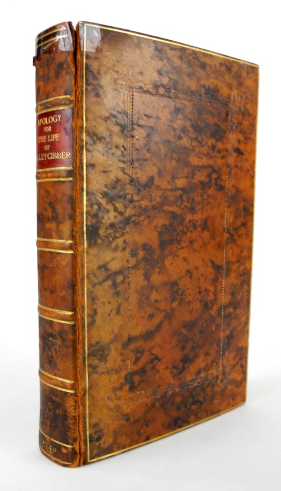 Used - acceptable - cover shows heavy use wear and aging to leather - has scrubbing and a crack full length in the front spine fold - has a piece of clear tape around the upper spine area - the two ribbon markers are fragile and are shortened and frayed - will need to be handled carefully and potentially need work on the front spine fold for consistent use. 1740 Bayntun Binding, as identified at the top edge of the verso of the ffep. About this book : An Apology for the Life of Mr. Colley Cibber, Comedian (1740) is an autobiography by Colley Cibber, an English actor, playwright, and Poet Laureate. The book chronicles Cibber’s life and career in the theater, detailing his rise from humble beginnings to prominence as a comedic actor and manager of Drury Lane Theatre. Written in a lively, conversational style, it offers insights into the 17th- and 18th-century London stage, including vivid anecdotes about performances, rivalries, and theatrical culture. Cibber also defends his controversial reputation, addressing criticisms of his work and personal character. The book is both a personal memoir and a valuable historical account of Restoration and early Georgian theater. S8B - E