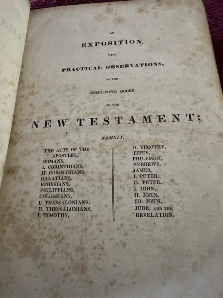 An Exposition Of The Old And New Testament Vol VI By Mathew Henry 1828. Binding has wear. There is fixing through out the book. Please see photos. Bookscoinsandmore prides itsself in customer satisfaction. We are glad you Chose to make your purchase with us and we hope you enjoy. We try our best to describe each item to the best of our ability and should you have any other questions please do not hesitate to ask. Shipping We try to be as close as possiable with shipping cost but sometimes we are wrong and in that situation you will receive a refund for the diference in shipping. We use USPS priority shipping unless customer requests something different or item is to big for priority shipping. All international buyers will pay shipping even if item states it is free shipping. Our auction prices start at the lowest price were willing to except for an item. Once again thank you for shopping with bookscoinsandmore and dont forget to leave a good review. Thank you and have a wonderful day. I have many rare books available right now so check out my stock.