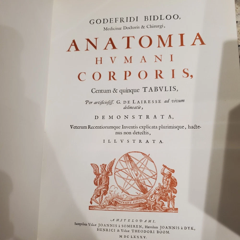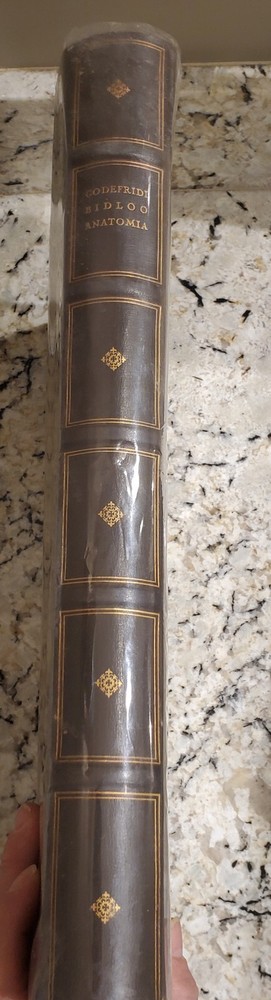 The book is covered in plastic to protect it. The book is in good shape overall but does show wear around the edges and corners. The pages are in good shape but also show basic wear. The pages are thick and made of good quality. The gold around the edges is sharp and in good shape. This is a limited edition only 2000 copies where made. This copy is number 5. Facsimile edition of Bidloo's noted atlas of human anatomy first published in Amsterdam in 1685. Large 4to (11"x16"), bound in burgundy leatherette, marbled end-papers, all edges gilt. No. 5 of 2000 copies printed. A bit of rubbing at top and bottom of spine, otherwise good.. The atlas is illustrated with 105 plates by Gerard de Lairesse, showing the human figure both in living attitudes and as dissected cadavers.