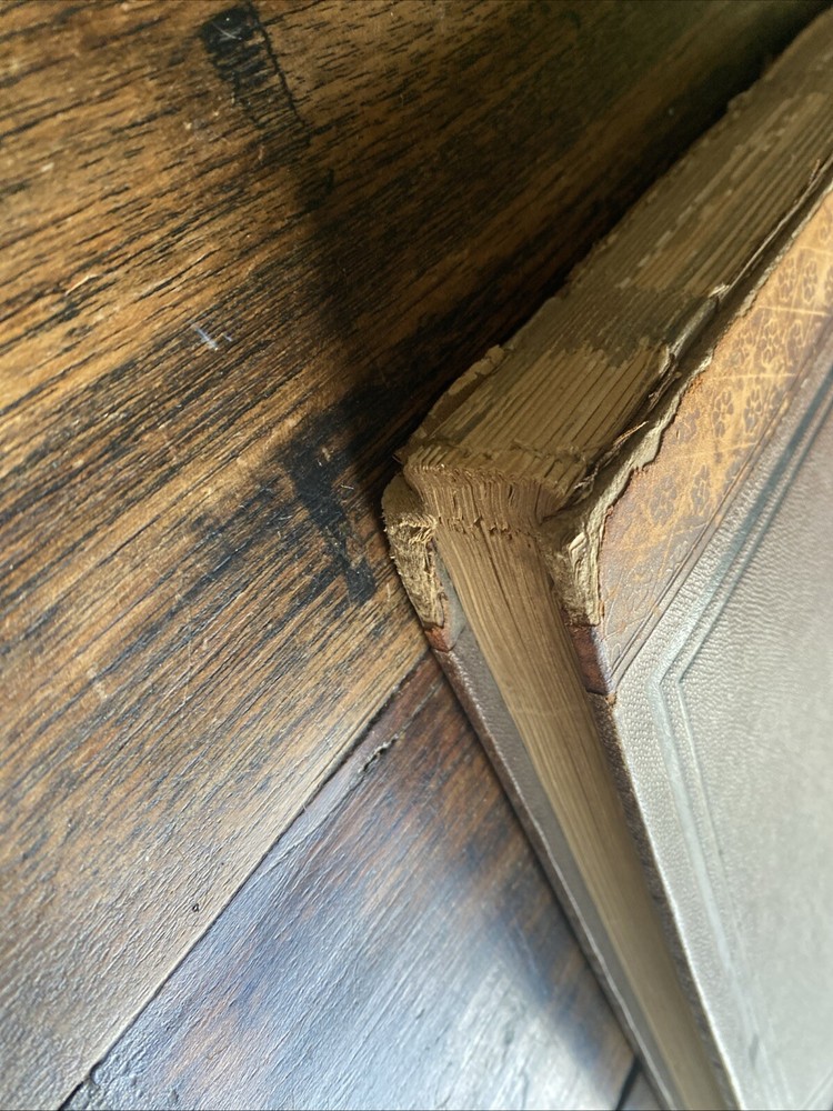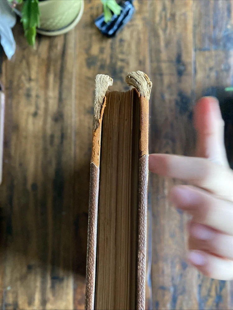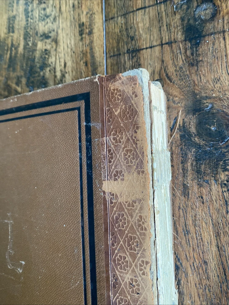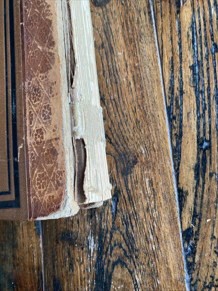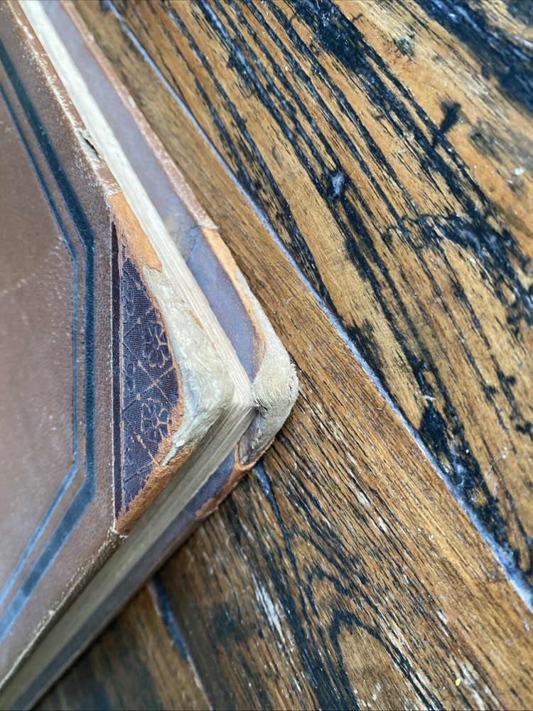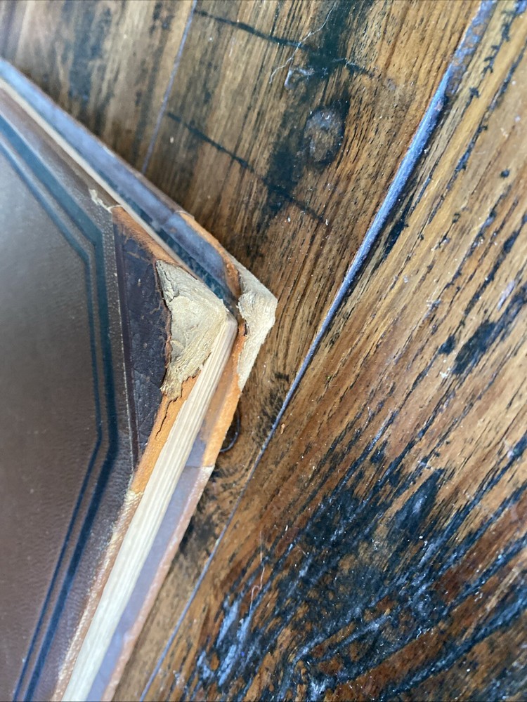 Antique - leather spine heavy wear corners - spine cover missing - covers loose bit not terrible - inside binding ok !there looks to have been some repair work to me! - please see pics!