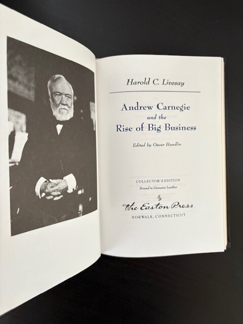Andrew Carnegie and the Rise of Big Business by Harold Livesay. Published by The Easton Press in 1988. Collector's Edition Bound in Genuine Leather. The condition is Very Good....