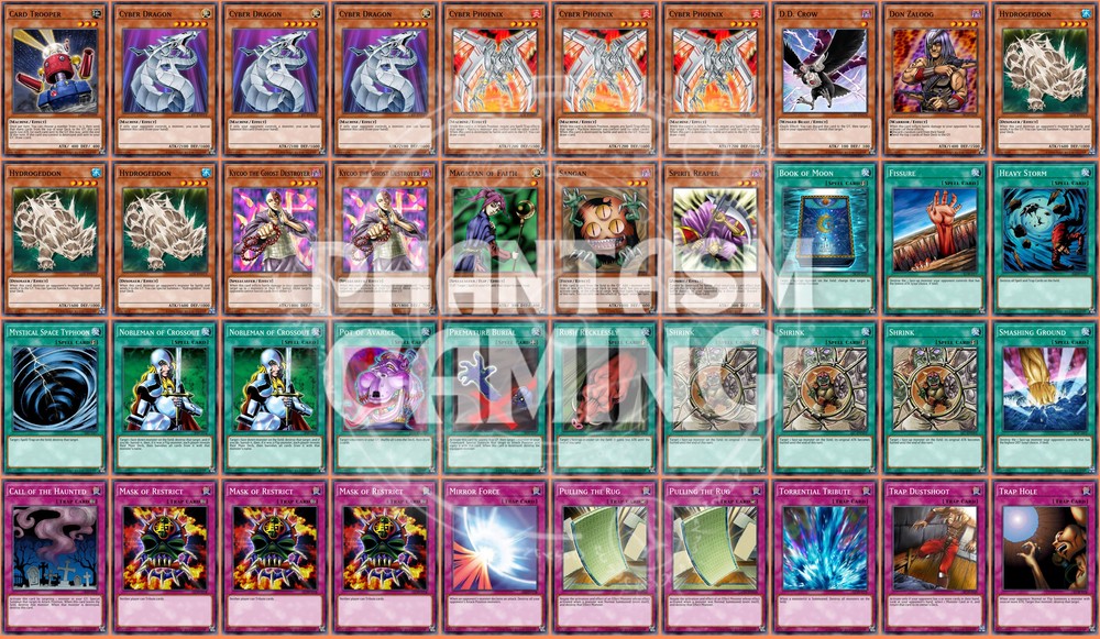 Deck Name: Anti-Meta Stun (Zombie) (A) # Main Deck (40) 1 - Card Trooper 3 - Cyber Dragon 3 - Cyber Phoenix 1 - D.D. Crow 1 - Don Zaloog 3 - Hydrogeddon 2 - Kycoo the Ghost Destroyer 1 - Magician of Faith 1 - Sangan 1 - Spirit Reaper 1 - Book of Moon 1 - Fissure 1 - Heavy Storm 1 - Mystical Space Typhoon 2 - Nobleman of Crossout 1 - Pot of Avarice 1 - Premature Burial 1 - Rush Recklessly 3 - Shrink 1 - Smashing Ground 1 - Call of the Haunted 3 - Mask of Restrict 1 - Mirror Force 2 - Pulling the Rug 1 - Torrential Tribute 1 - Trap Dustshoot 1 - Trap Hole You will receive all of the following cards listed above. Most cards will will be in near mint condition. In the case of certain older cards we will do our best but some cards may be light or even moderatly played in extreme condtions. Those conditions being the card has not been reprinted in a number of years and con no longer be easily purchased in light or near mint condition. Set, Rarity, and Edition will vary and cannot be special requested. These lists are constructed with least expensive rarities we have available in stock. All cards are play legal copies. Note: If purchasing a Yugioh Deck all Speed duel cards are 100% legal at all levels of play. Store Policies Here at PMG_LLC , we pride ourselves on having the best customer service around. If you have any questions or can't seem to find something that you want please do not hesitate to contact us. We will do our best to respond to all questions within one business day. Hours of Operation: Monday-Friday: 2:30pm - 10:00pm Saturday- 10:00am - 8:00pm Sunday 11:00am - 5:30pm Note: We are closed all national holidays. Info: Thank you for choosing PMG_LLC . We appreciate your business. We ship Monday through Friday to make sure you get your deck as quickly as possible. All orders priority orders can use combined shipping. In order to use the combined shipping your whole purchase needs to be checked out as one order. We ship once we have received your payment and payment has cleared. As always if you have any questions or concerns please feel free to contact us via email. Shipping Information: We ship Monday through Friday, barring national holidays during which the United States Postal Service is closed. If you purchase a card on Friday or Saturday please bear in mind it will not ship until Monday. US Shipping: First Class Mail : Free. Comes with tracking information. Priority Mail with Delivery Confirmation : $9.99 All orders are shipped in appropriate protective material inside bubble mailers. International Shipping: We do not offer international Shipping Return Policy: You must return items sold and fulfilled by PMG_LLC within 30 days of delivery to be eligible for a refund. Returns which are damaged in the mail due to improper return packaging will receive partial refunds. We will process a full refund for all items returned in their original condition. In order for us to process your full refund you must include the full name associated with the order as well as the eBay order number inside the return packaging. We will not process returns which do not include the buyer's name and order number. Requirements: Please return items with the original plastic packaging. Failure to do so may result in a partial refund. Also you must inform us of any returns you may wish to process before sending them back. Any items simply send back to us without prior contact will not be eligible for refunds. Important Notes Remember that to benefit from our domestic combined shipping on priority orders you must to pay in a single payment. If you place two separate priority orders you will be charged the $7.50 shipping fee for both orders. If you place multiple orders for Priority shipping you will be charged the corresponding shipping costs for each order, even if you place the orders on the same day. We do not refund shipping costs as we tend to package orders throughout the day and may not notice that you would otherwise have qualified for combined shipping. We want to provide you with 5 Star service and earn your Positive Feedback, so if for any reason you are not happy with your transaction, contact us before leaving feedback. Business Day - Our business day runs from Monday to Friday from 9am to 4pm, excluding US national holidays. Any orders placed or payments cleared less than 4 hours before the close of business will be considered orders from the following business day.