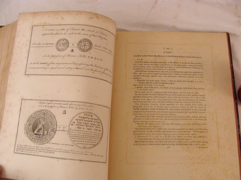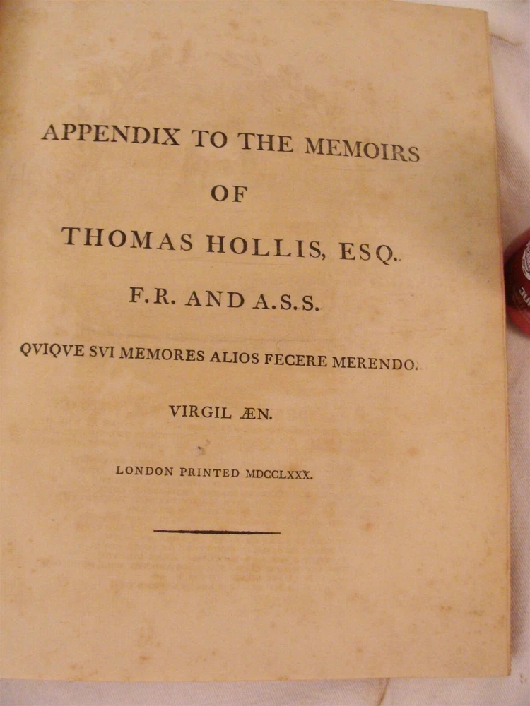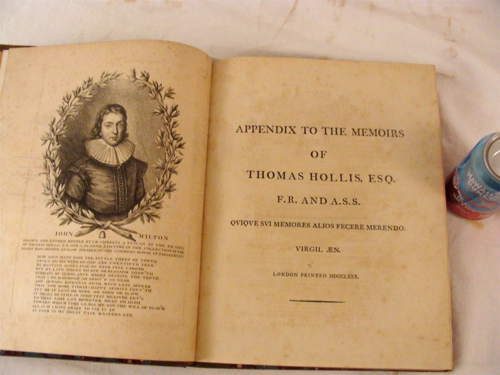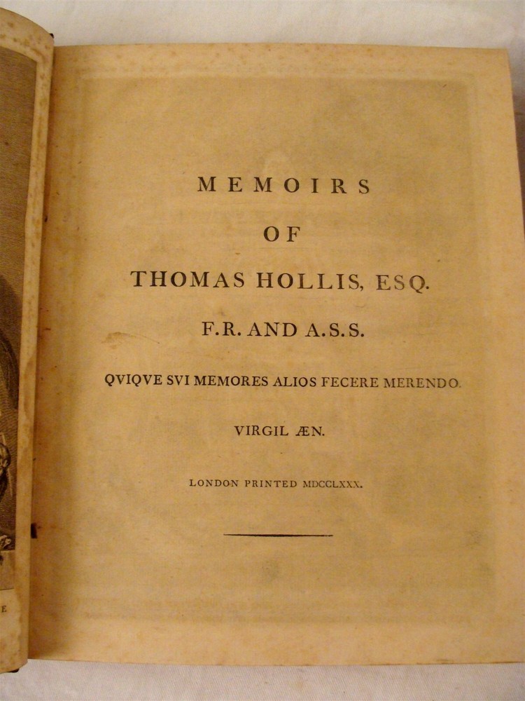 Click photos for larger image! Description & Condition: Up for sale is this antique rare 1780 two volume book set titled " Memoires of Thomas Hollis Esq". They were printed in London and each volume with engravings. The boards are marbled leather and the front inner boards with ex library label from Costanter Hoar in Littleton, Massachusetts. They are in good condition with light wear to boards and each volume has a few pages with foxing mainly on opposite pages of the engravings but most are white and clean. They measure 13 3/4" by 11" each. A very nice set that will look great in any collection. Please view all the photos and if you have any questions please ask. THANK YOU FOR BEING INTERESTED IN MY AUCTION, BE SURE CHECK OUT OUR OTHER AUCTIONS FOR MORE INTERESTING ESTATE FRESH ANTIQUES AND COLLECTIBLES LISTED JUST ABOUT EVERY NIGHT ON E-BAY!!! Please take a minute to read below, it explains just about everything you will need to know to be sure we will always provide great merchandise, competent service, guaranteed items and rectify any issues at hand for all of our customers no matter the size of the purchase!!! Our Guarantee: I guarantee all items as described, if you feel I misrepresented an item and you are not happy I will refund your purchase price with no questions asked. If an item has a reserve I will be more than happy to reveal it through E-mail. PAYMENT METHODS: WINNING BIDDERS ARE EXPECTED TO RESPOND WITHIN 7 DAYS OF AUCTION END! My preferred method of payment is PayPal, if you do not have a PayPal account I recommend you open one up. Shipping Information: Please check-out all my other auctions as I will combine shipping to save you money on multiple purchases! When making multiple purchases within one night please wait to be invoiced as this is when I can adjust your shipping. If you pay full shipping cost on each items odds are I won't catch it as packaging, listing and invoicing . If you realize that you did pay full price on each item and they were boxed together, please bring it to my attention and I will be happy to refund part of the shipping. I will always do my best to get you the best quotes possible with minimal handling costs. Larger items are a bit difficult to get an exact shipping quote on, especially if it is going across or out of the U.S. and may have small handling fees to them as large sized corrugated boxes and packaging are not cheap. Very large packages may be subject to a reqoute once the item is boxed and/ or a third party shipper is involved. My packaging is of the highest quality, many orders are shipped in double wall boxes and/ or double boxed, all new shipping materials are used and no expense is spared in making sure your items arrive to you in the condition you expect! If you feel a shipping quote is not right, please feel free to contact me and I will explain why it is such, adjust the price if the E-Bay calculator is out of sync with my shipping carrier or find alternative ways of shipping items to you. Please understand that shipping by all carriers may take longer than they claim. They claim 2-5 days but in many cases we see it taking up to 10 days. I record and track all shipping of packages that leave our building. So before you leave me any NEGATIVE or NEUTRAL feedback because of shipping please note I am very timely on sending your items out and also do the best I can to keep shipping costs lower for you by using either U.S.P.S. ~ FEDEX ~ UPS, depending on the size, weight, insurance value and destination of the package. Leaving Feedback: I will leave feedback for all purchases after we receive feedback from you to make sure all arrived well, product is up to your standards and you are happy with your purchase (usually in bulk every 2-3 weeks). Thank You, Good Luck and Happy Antiquing! Dale Powered by SixBit's eCommerce Solution