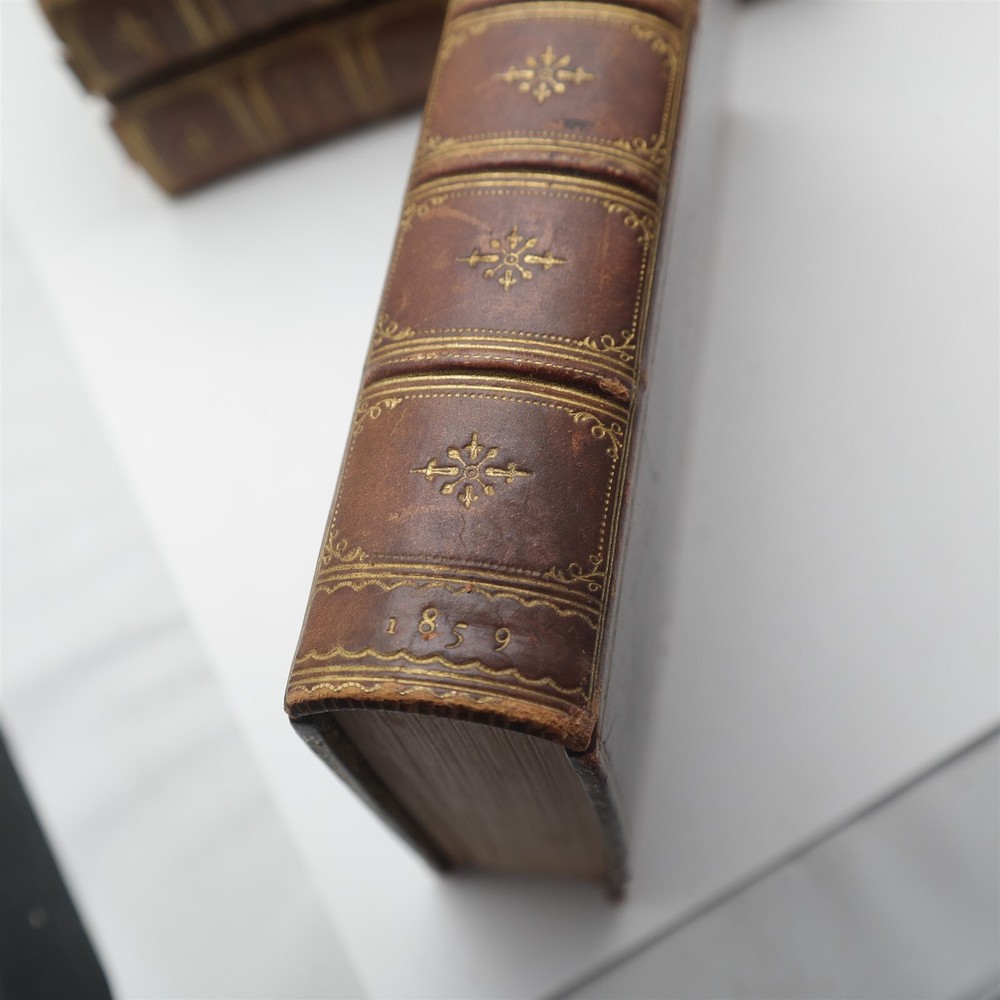 This is a very nice four volume set of full Leather bound books entitled Evely's Diary. The issue is volume one's cover is torn at the seam (as shown in the 11th image). They measures 5" X 7" and will come exactly as shown. Powered by SixBit's eCommerce Solution