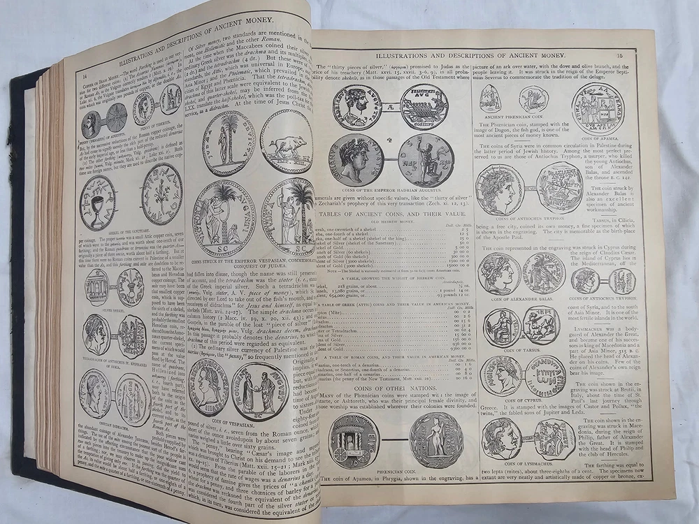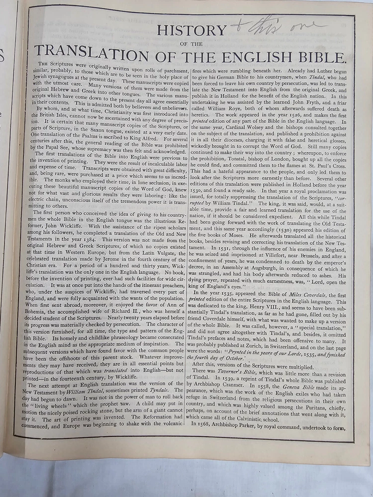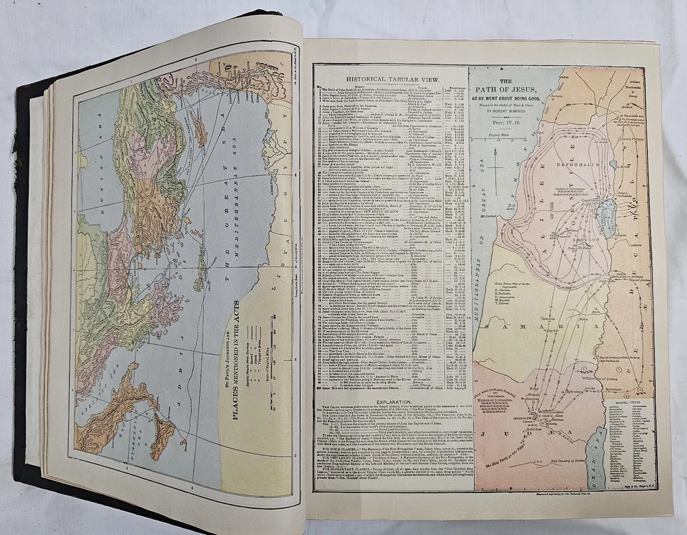 CONDITION: Please see the photos. Aged but intact. Penciled in notes as shown in the photos. The finish, or outer layer, of the thick leather binding is "flaking" off. All of the family pages are filled, or written, in. Bible measures approximately: 12 1/4" x 10 1/2" x 4 1/2" thick. This huge BIble not only contains the old and new testaments. It has numerous reference and study pages including: - HISTORY OF THE TRANSLATION OF THE ENGLISH BIBLE - HISTORY OF THE RELIGIOUS DENOMINATIONS OF THE WORLD - NUMEROUS MAPS - NUMEROUS ILLUSTRATIONS - BIOGRAPHICAL SKETCHES OF THE TRANSLATORS, REFORMERS & MARTYRS - HISTORY OF THE BOOKS OF THE BIBLE - DESCRIPTIONS OF IMPORTANT STRUCTURES (i.e. The Tabernacle in the Wilderness, Temples of Solomon & Herod) - THE BOOKS OF THE NEW TESTAMENT WITH AUTHORSHIP & DATES - ILLUSTRATIONS AND DESCRIPTIONS OF ANCIENT MONEY - HOUSEHOLD DICTIONARY OF THE BIBLE - FAMILY PAGES (ALL WRITTEN IN) - SCENES & INCIDENTS IN THE LIFE OF OUR LORD - A COMPLETE & PRACTICAL CONCORDANCE TO THE OLD & NEW TESTAMENTS - A CHRONOLOGICAL INDEX TO THE HOLY BIBLE - FOUR THOUSAND QUESTIONS AND ANSWERS ON THE NEW & OLD TESTAMENTS Please feel free to email with any questions prior to bidding or buying. I try to give any information I have about the listings, and to tell you whether the information is fact or opinion. I have a "full refund option" (see returns below) policy for anything I misrepresent. My description will point out anything I find that could possibly be considered a flaw. For this reason, many past buyers felt that they received a better product than they expected. DOMESTIC SHIPPING CHARGES: Larger packages will have the option of 3 ground carriers. Priority mail is offered on smaller, more economical, packages. I use padded envelopes, peanuts, bubble wrap, and Styrofoam packaging as necessary to ensure safe arrival. Free local pick up in, or possibly near, Williston, FL is an option. If you live on the west coast please allow that transit time and costs will be more than average from Florida. I'm happy to combine multiple purchases, paid for at the same time, into one package to save on shipping. CUSTOMER SERVICE: Once you examine your purchase, please message, or leave positive feedback, to confirm receipt and satisfaction. If you encounter any problem with your service or product, I ask that you contact me, via eBay, so that I have the opportunity to resolve the issue. FEEDBACK: Automatic feedback is left after your purchase. Once you have received your purchase, please consider leaving me the best feedback possible. If my service or product did not meet your expectations in any way please contact me. Mimi's E-Treasures Welcome to my listing. Quite simply, my goal is to make an honest living and have fun at the same time. I strive to provide reasonable prices and excellent service. I invite you to browse my store and auction listings often to find an eclectic mix of items from local estates. May your day be filled with sunshine!