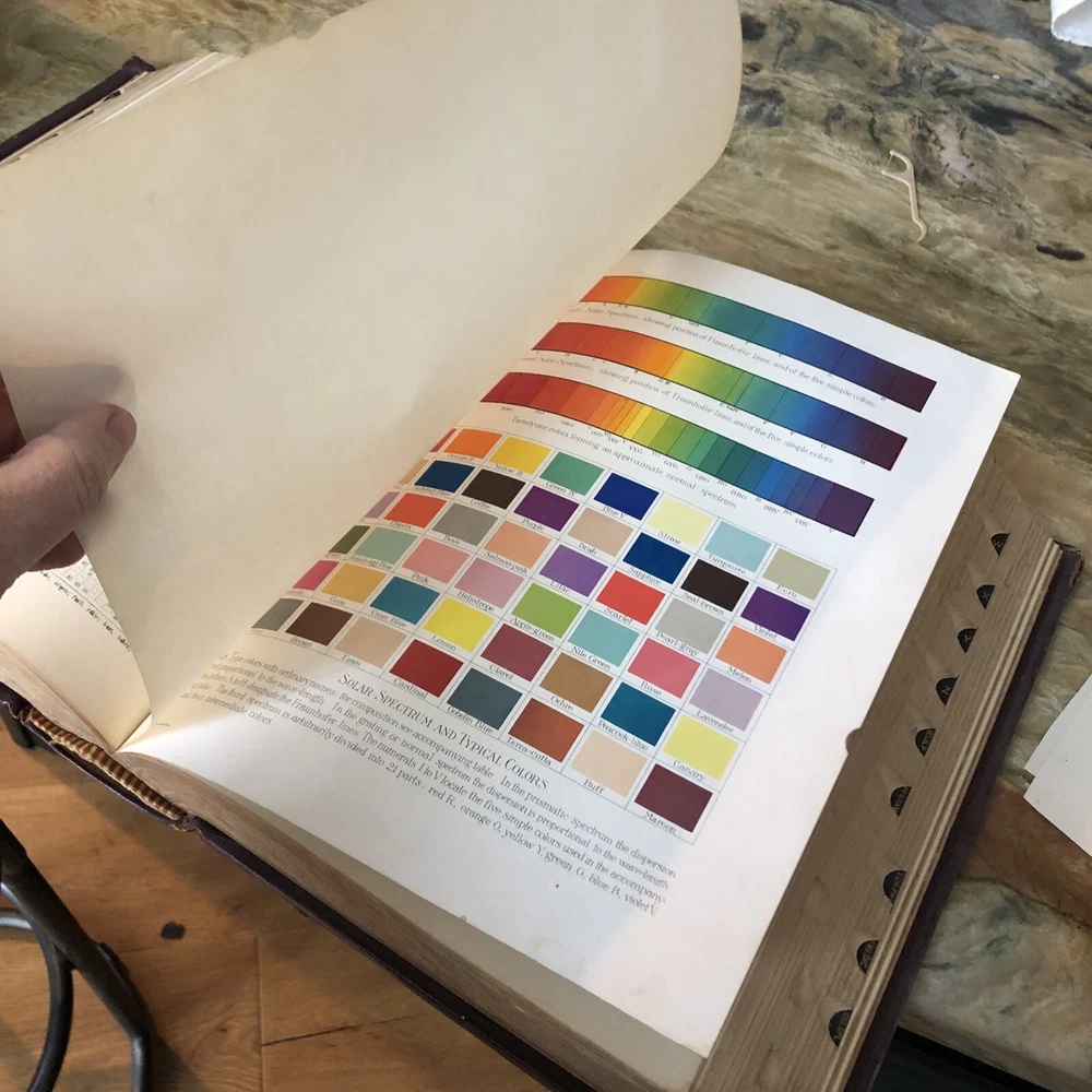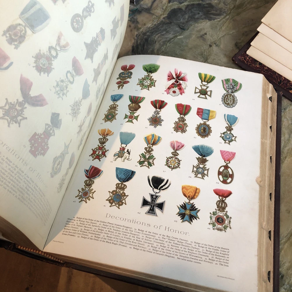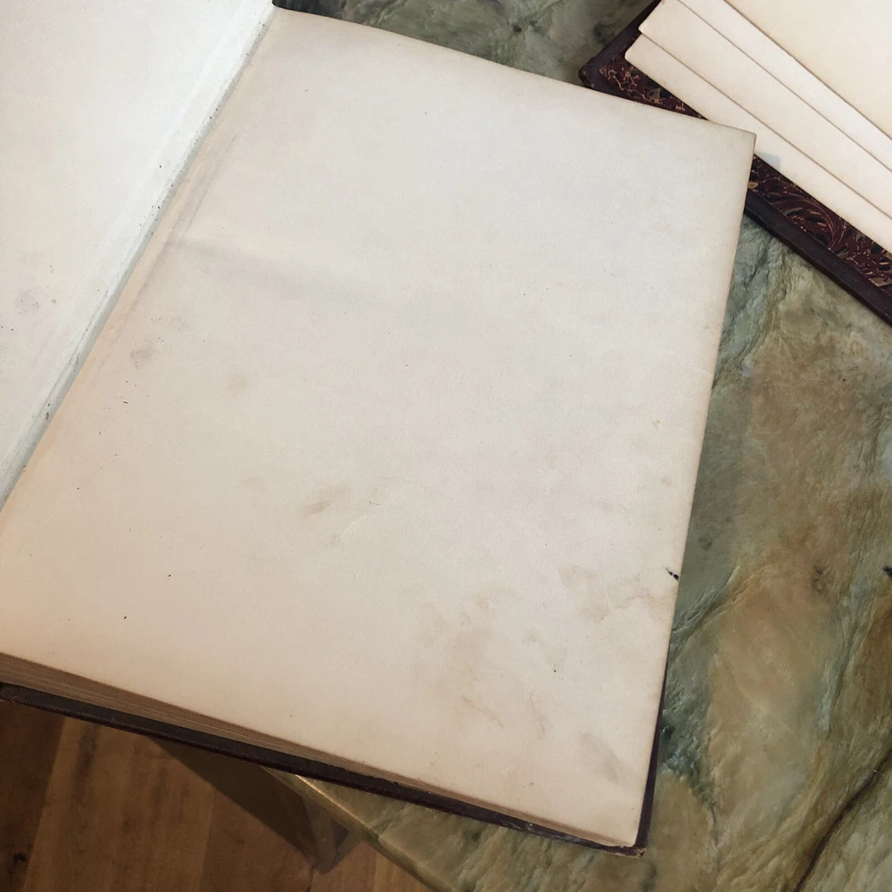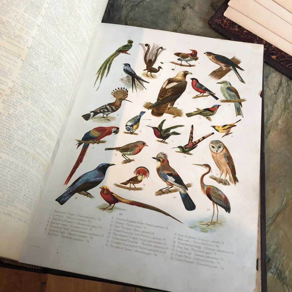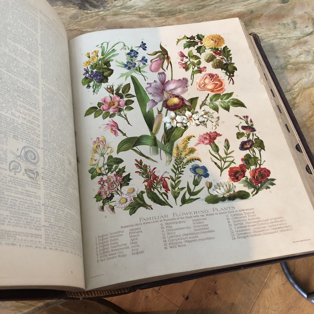 (Old Books, 19th Century Books, Leather Books, English Dictionary, ). A Standard Dictionary of the English Language, Upon Original Plans, ed. by Isaac K. Funk. Published 1893 & 1895, London by Funk & Wagnalls Company. 2 volumes. Volume 1 A-L is published in 1893. And is 1060 pages. Volume 2 M-Z is published in 1895. 1257 pages. Text in English. Chromolithographed full page plates, countless small line drawings within text throughout. A monumental set, each volume is thick, large and very heavy. Period full leather bindings, slightly raised bands, gilt compartment decorations and title lettering, embossed cover designs, gilt ruled cover, marbled end papers, all edges gilt, thumb indexed along fore-edges. Item is physically old and shows some signs of handling and time. Item is not new or in "new" condition. Bindings gently age worn, joints rubbed and slightly scuffed with minor short surface cracking at ends of front joints, some weakening of covers (due to weight of each) although all covers remains firmly attached, set is sound, some old edge staining along top of spine near rear joint of vol. 1, tips of boards worn down a bit, still remains overall attractive as an object. Text block paper is clean, internally well preserved, little staining or soiling, any flaws of a minor type unworthy of specific mention. Still attractive on the shelf. Item displays a pleasing and unique age patina and is in nice antiquarian condition, any age flaws easy to overlook or forgive. Please review photos for more detail and our best attempt to convey how this antique set survives. Book Measures c. 12 3/4" H x 9 1/2" W.