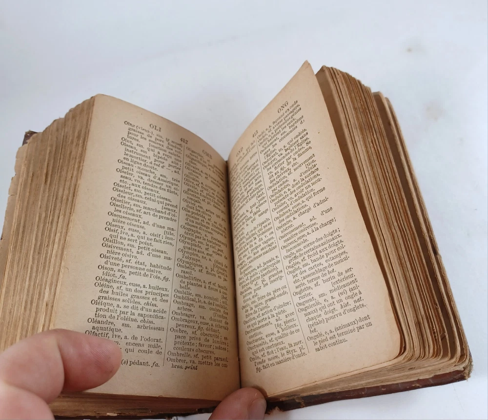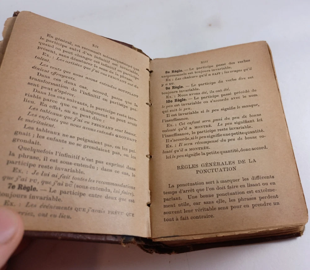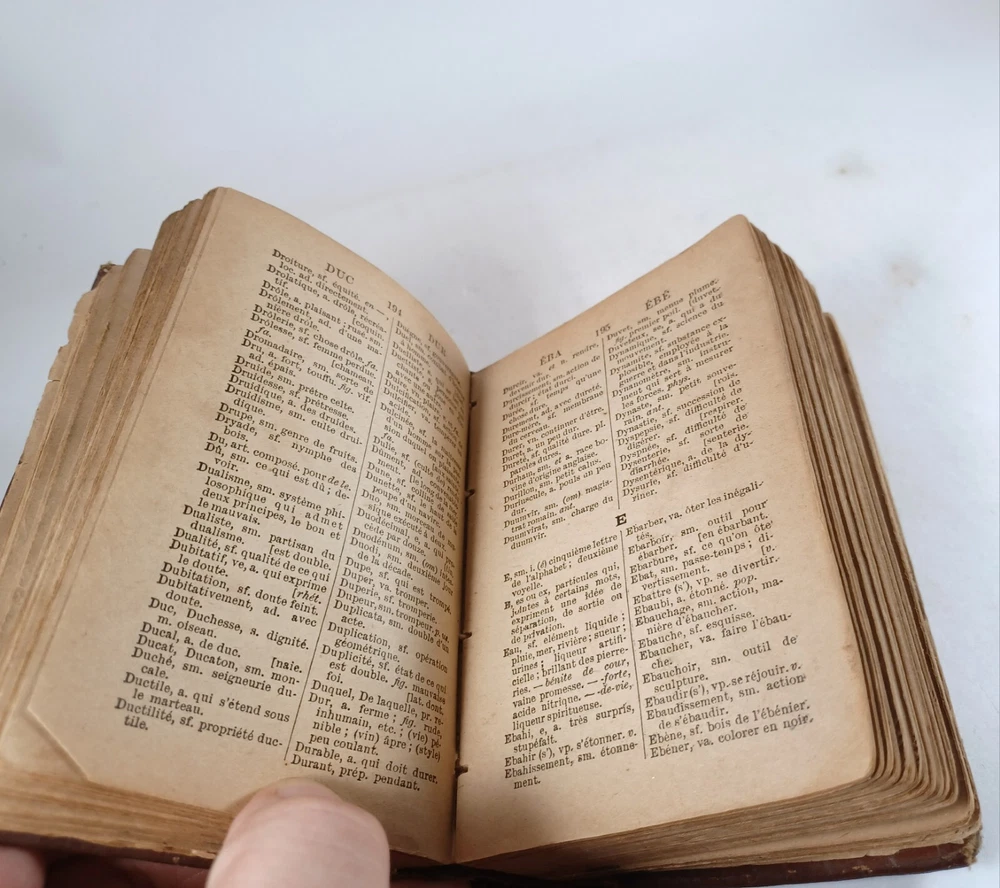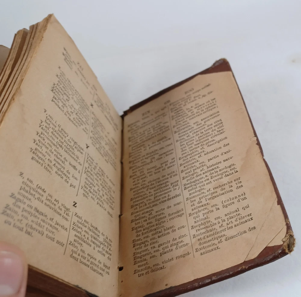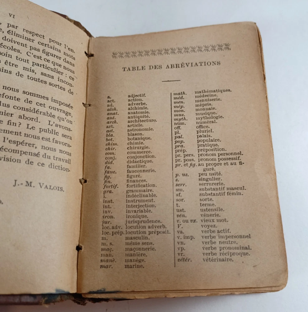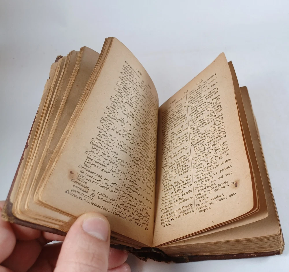 Please review all pictures for overall condition and size, as this helps form the overall condition/description of the item. Wear is consistent with age and use. Binding is a bit loose on the front and back pages. The further into the book you go, the tighter the binding is. The first and last pages are stuck to the inside cover, so that is covering up some information. Pages feel good to flip through. Measures 5" X 3.25" X 1.5" thick. Nice alligator skin texture to the binding. Very interesting book when we translated the first few pages. Please, message us with any questions, we respond fast. Thanks Most orders will ship out within 24 hours or same day after payment. ******************************************************* We translated the first few pages. They read: "Registered in accordance with the Act of Parliament de on nada, in the year 1900, by CO BEAUCHEMIN & Fire Office of the Minister of Agriculture. The undersigned have acquired from C. Q BEAUCHEMIN & FILS, ownership of this work. BEAUCHEMIN BOOKSTORE resp. limited" "FOREWORD The Hocquart Dictionary has been in use in Canada for over sixty years; it has even been classic for a very large number of years. Unfortunately, this useful work having not been retouched since the revision of the Dictionary of the Academy in 1877, had become out of fashion and no longer deserved the title of Dictionary of Spelling of the Academy. To make it conform to the new Dictionary of the illustrious assembly, it was necessary to make it undergo numerous and important changes, among others: to confront it with the Academy, to remove a couple of thousand words which had fallen into disuse, on the other hand, add an even greater number of new words that the progress of science has introduced into everyday language; change the spelling of a very large number of words, particularly with regard to accents; change the gender of many nouns, etc., etc." "It was still necessary, out of respect for the en. age and youth, eliminate certain offensive words which should not appear in a book intended for schools. This is what we have done with particular care: the book can now be placed, without inconvenience, in the hands of all kinds people. The task that we imposed on ourselves in the overhaul of this work undertaking was more difficult and more considerable than one would believe at first glance. Did we bring it to a successful conclusion? The public will be our judge. If his judgment is favorable to us, as we dare to hope, we will believe ourselves sufficiently rewarded for the work that the revision of this dictionary cost us J.-M. VALOIS Montreal, April 26, 1900.