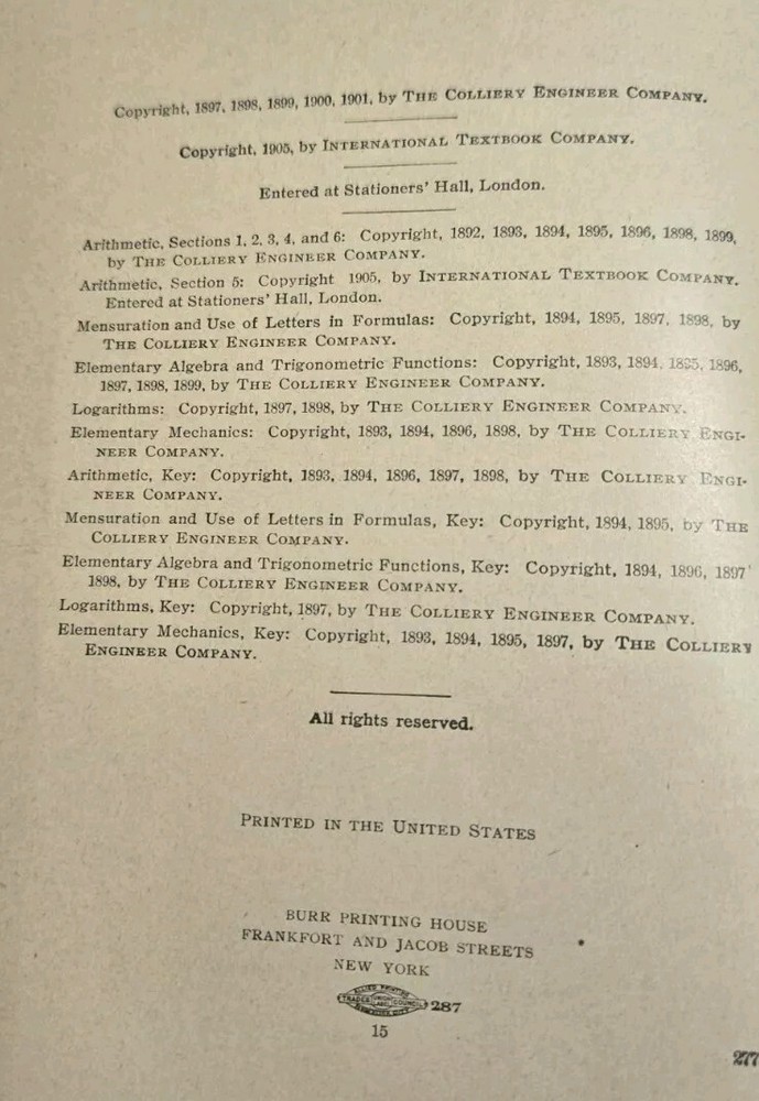 An antique leather-bound book from 1905 titled "Mathematics I.C.S. Reference Library" Vol. 15 by various authors. Published by I.C.S. Reference Library in the United States, this English-language book covers mathematics and is part of the character family of Mathematics. It is an original edition and features a leather binding. Edges very worn over the years. But all over in good condition. No paperlost or loose pages or torn papers in the book. Also not loose from the spine. Book 9'x6'x1' Please look carefully at the photos (zoom in!) No garanty or refund Look at my other Auctions ✨️ No Islands just USA Shipping