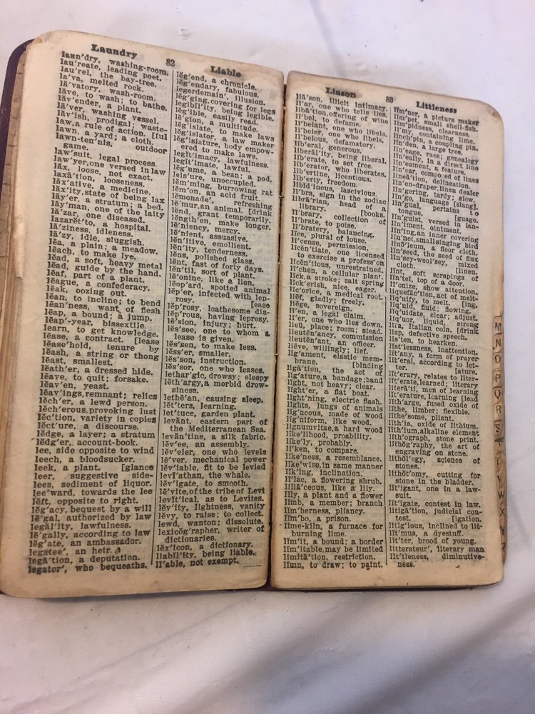 Antique 1905 Webster Dictionary Vest Pocket Self-Pronouncing Black Leather Bound Copyright 1900 by Thompson & Thomas Chicago Binder has come loose. Please view all photos to see Condition. Thanks for looking.