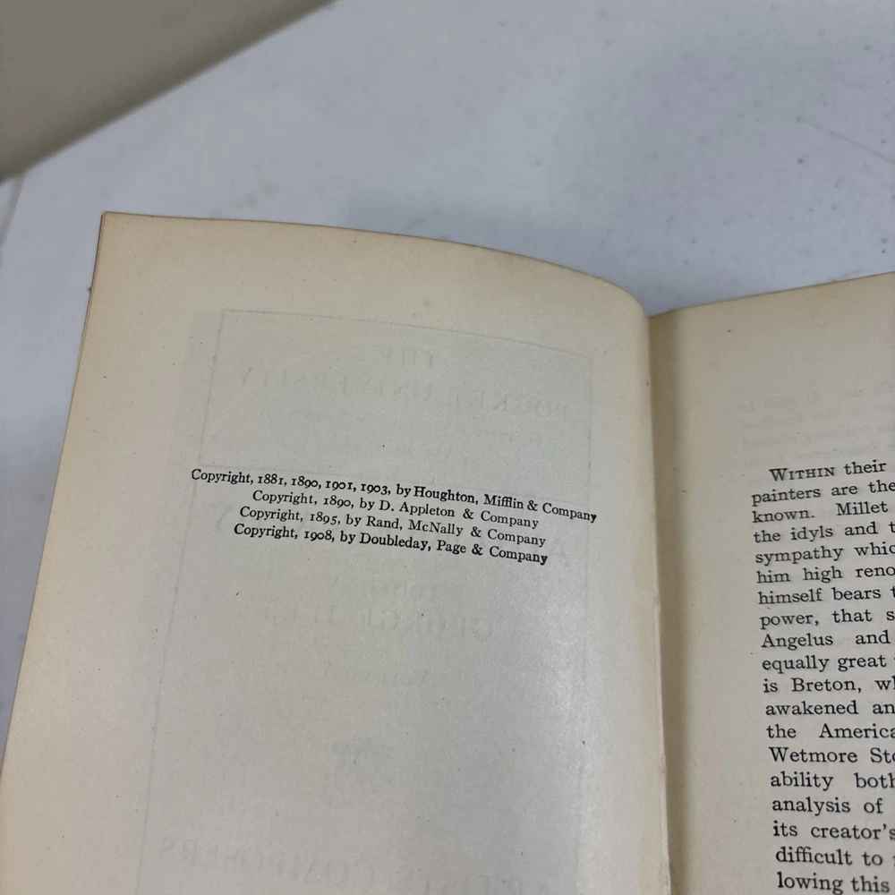 Antique 1908 Pocket University Vol XXI Artists Composers Green Leather Book