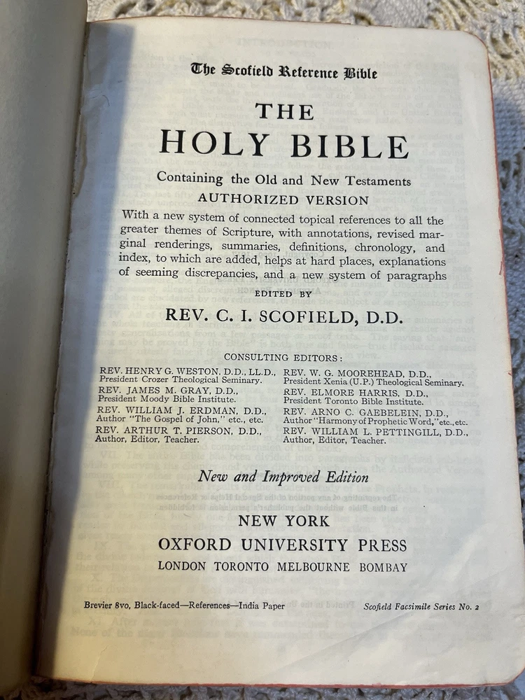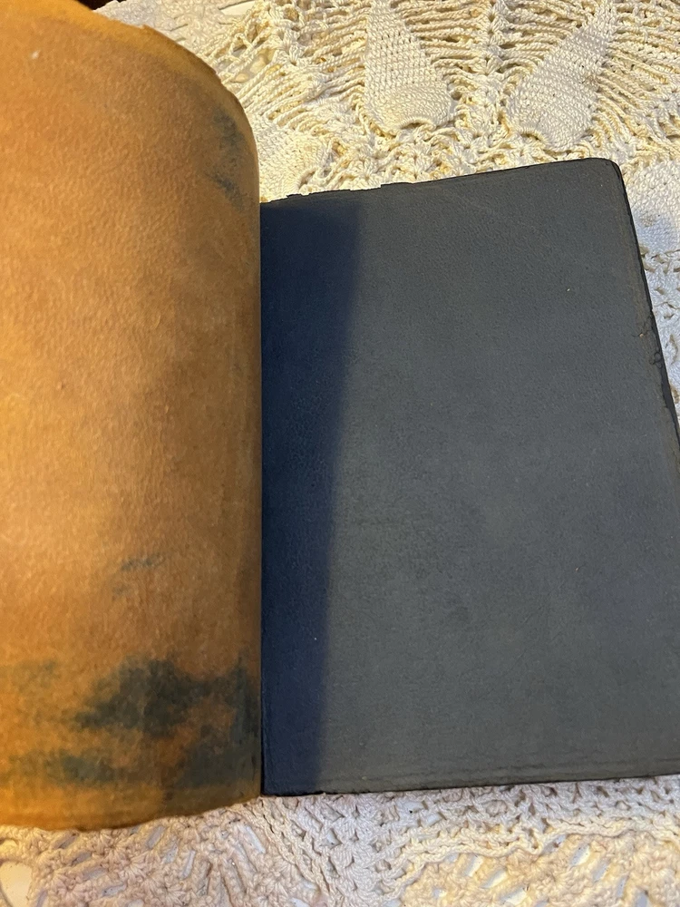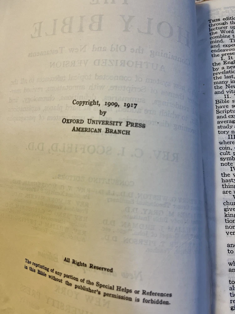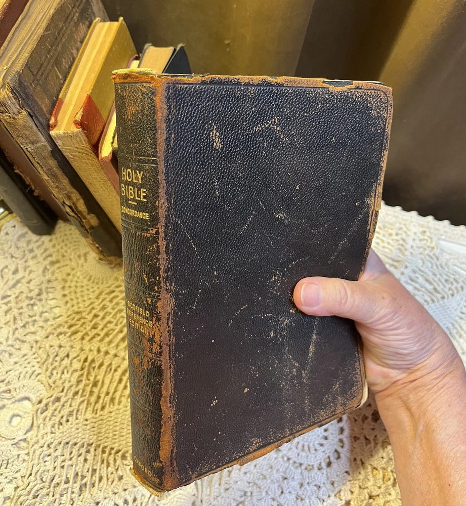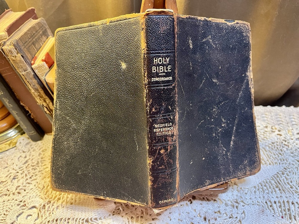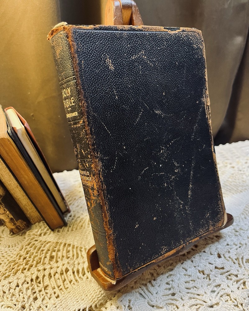 Beautiful 1917 Bible. Found at an Estate Sale. Well used, worn and distressed. Leather soft like butter. No inscription or writing inside. Front cover has come undone from inside page. Inside front page has partly torn from binding. Please see all photos for condition. Wonderful nostalgic bible from the past. Thanks for looking and have a wonderful day!