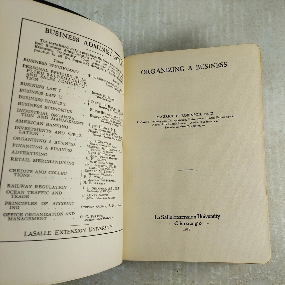 Antique 1919 Leather Business Administration LaSalle Extension University Vol 10 Organizing a Business. Good Condition minor cover wear and light tanning. Shipped with USPS Media Mail.