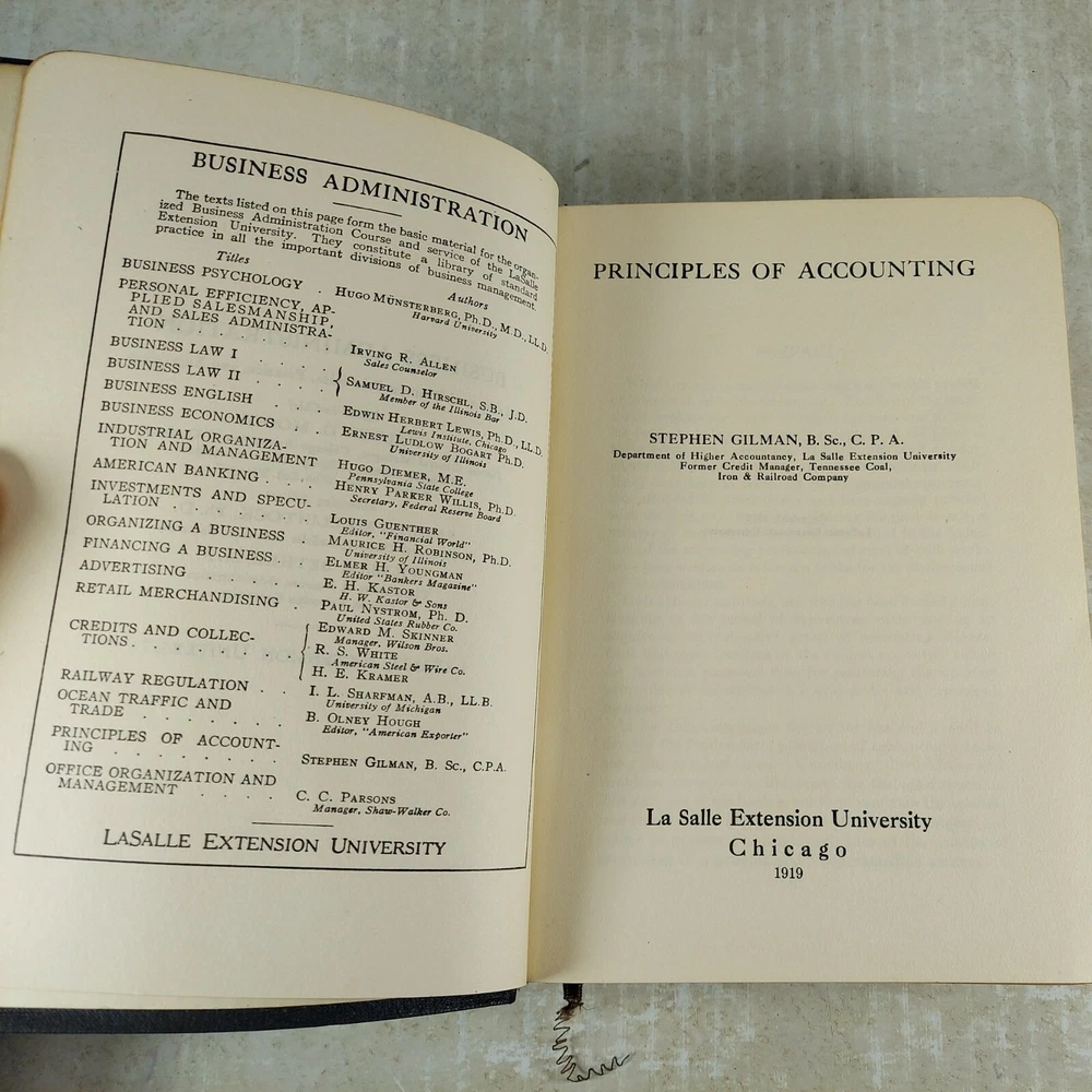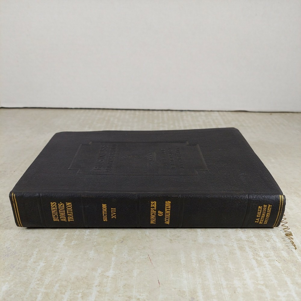 Antique 1919 Leather Business Administration LaSalle Extension University Vol 17 Principles of Accounting. Good Condition minor cover wear and light tanning. Shipped with USPS Media Mail.
