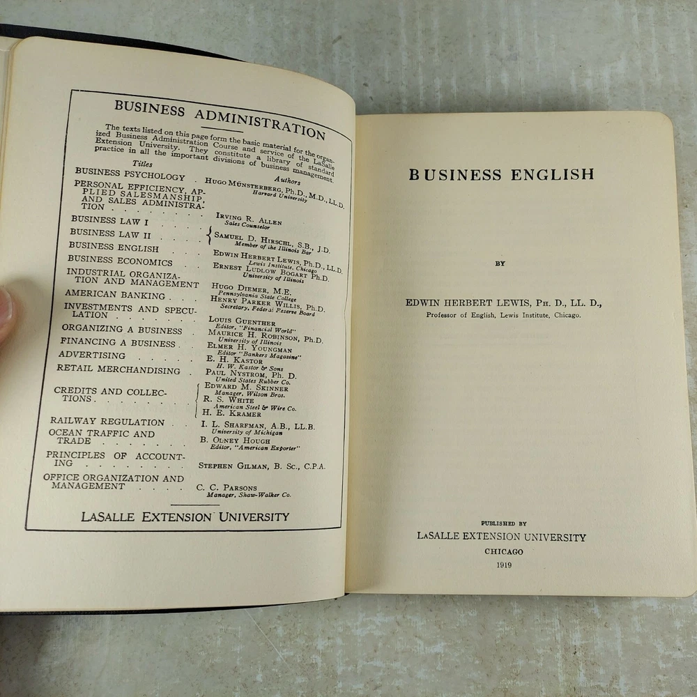 Antique 1919 Leather Business Administration LaSalle Extension University Vol 5 Business English. Good Condition minor cover wear and light tanning. Shipped with USPS Media Mail.