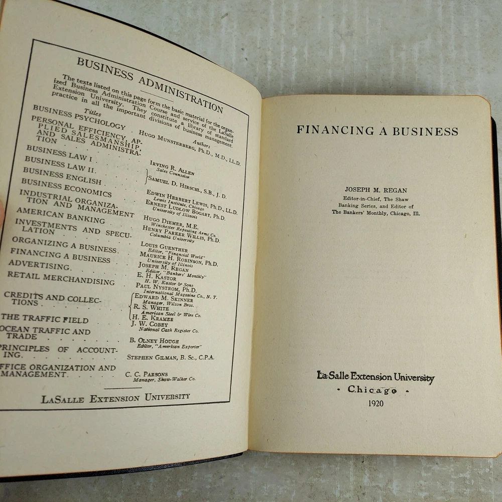 Antique 1920 Leather Business Administration LaSalle Extension University Vol 11 Financing a Business. Good Condition minor cover wear and light tanning. Shipped with USPS Media Mail....