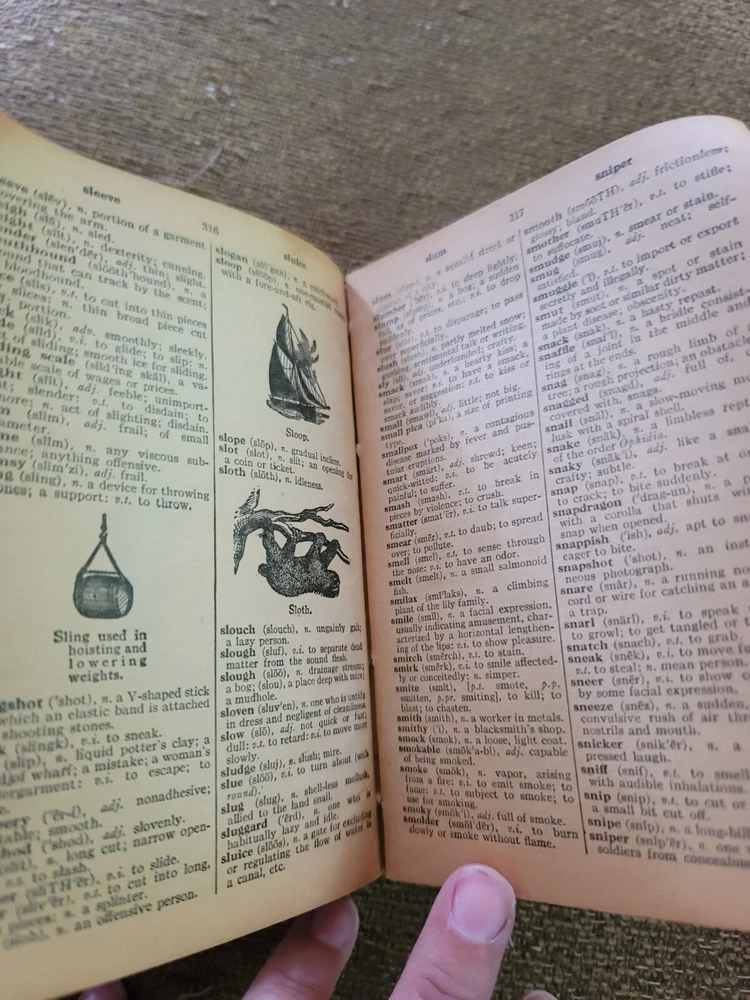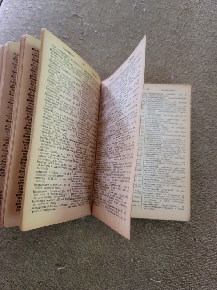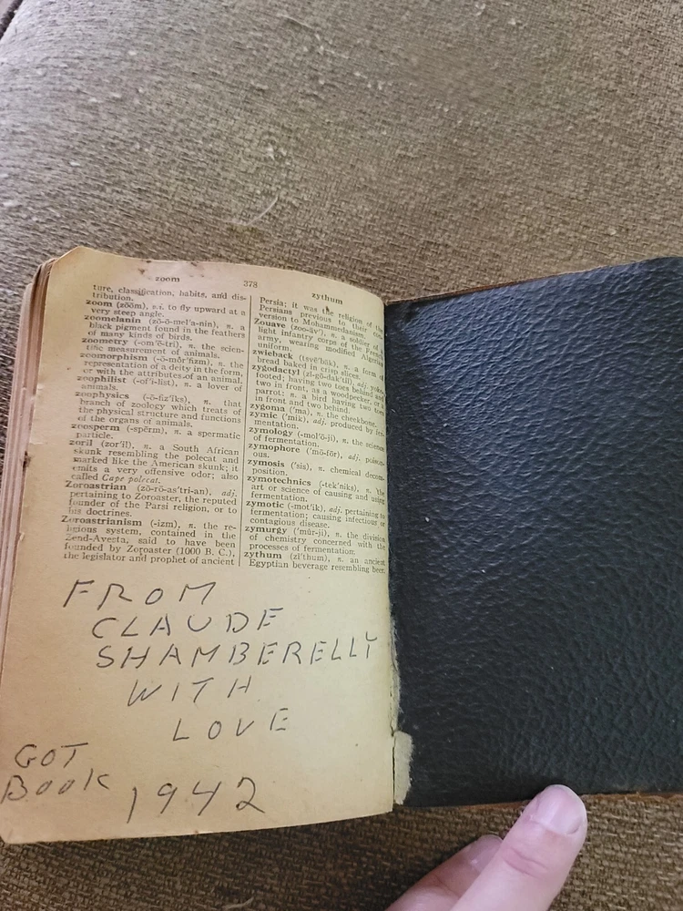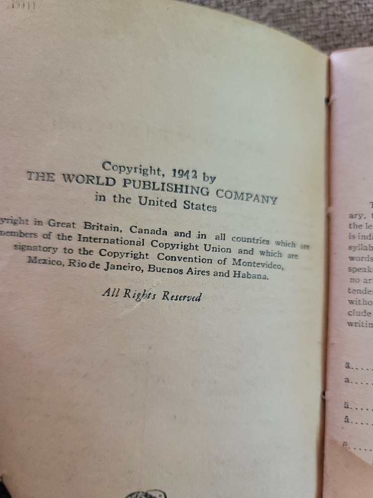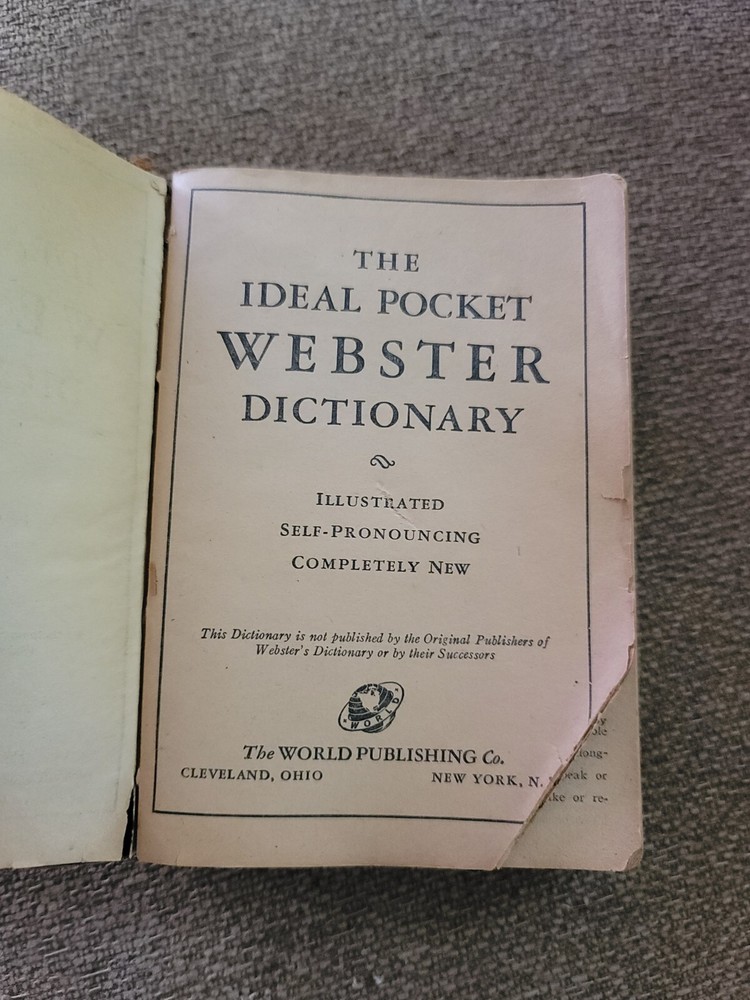 This antique 1942 Webster's dictionary is a must-have for collectors and avid readers alike. The leather-bound cover is both durable and stylish, adding a touch of sophistication to any bookshelf. Published by The World Publishing Company in the United States. With a focus on English language and printed in 1942, this dictionary is a unique piece of history that is sure to impress. The book's subject matter and year of printing make it a valuable addition to any collection. The binding is sturdy and well-preserved, ensuring that this piece will be enjoyed for many years to come. Whether you're a seasoned collector or simply looking for a unique addition to your library, this antique Webster's dictionary is a must-have. This is illustrated. This is leather bound with an Alaskan figure With dog and Alaska printed on the cover. In used condition with evidence of wear. Some torn pages and staining on cover. See photos. Selling a is
