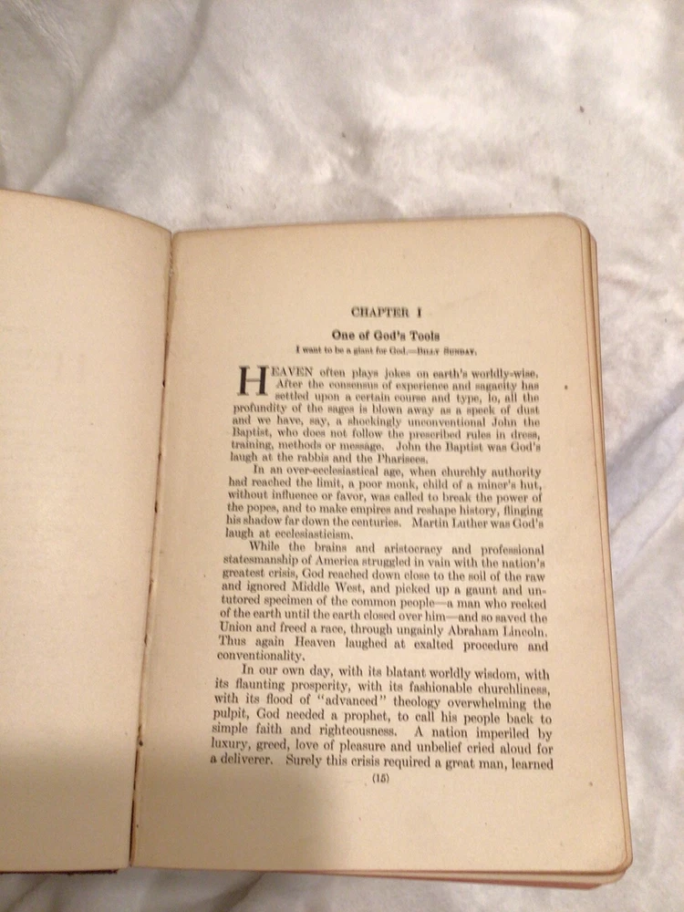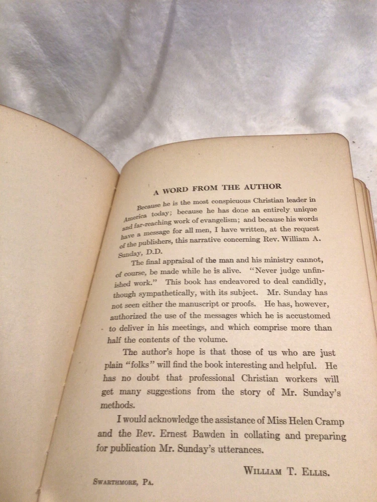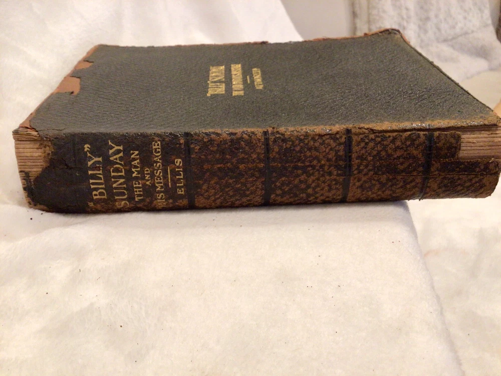Estate sale find! This antique book from 1914 is a rare gem for collectors and enthusiasts of historical biographies. Written by William T. Ellis, it chronicles the life and message of the renowned evangelist "Billy" Sunday. The book features a leather binding and is in the English language, with special attributes that make it an authorized edition by L.T. Myers publishing. The topics covered in this book include the life and times of "Billy" Sunday, his message, and the impact he had on American society in the early 20th century. The subject matter is an engaging and informative read for those interested in the history of religion and the people who have shaped it. This book is a must-have for any antique book collector or anyone who appreciates a great biography.