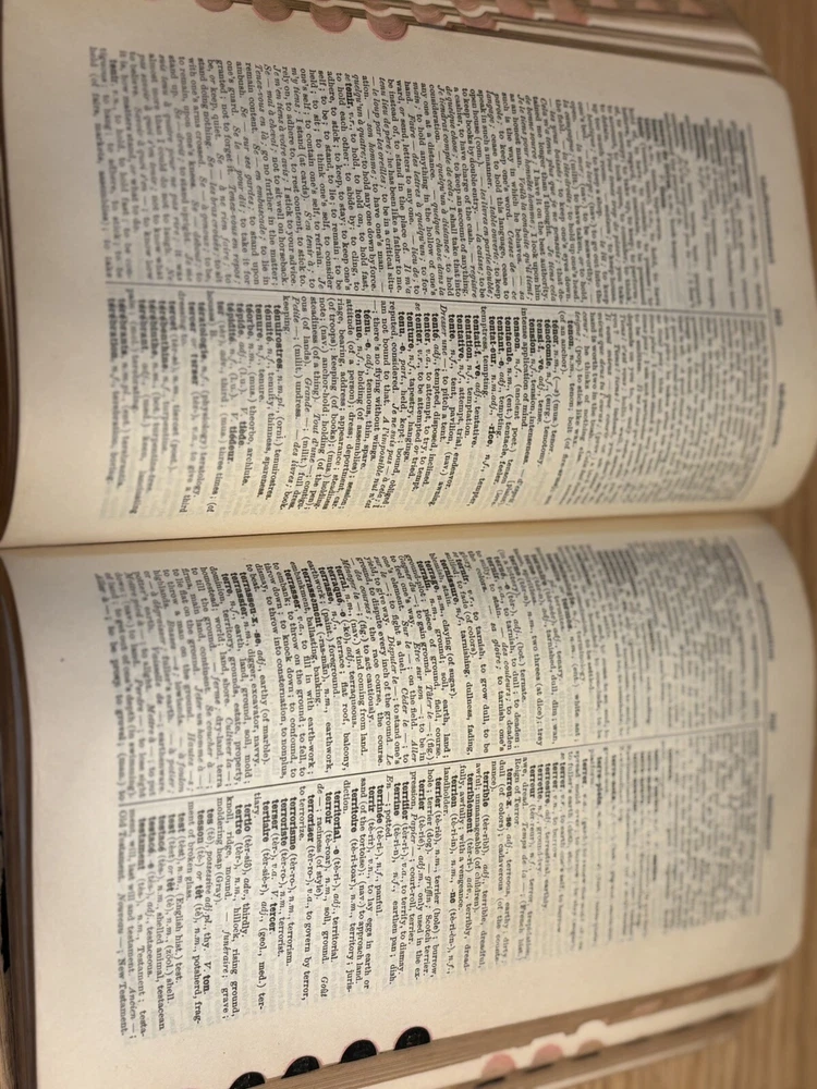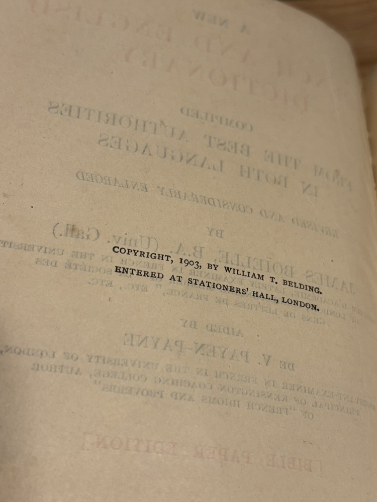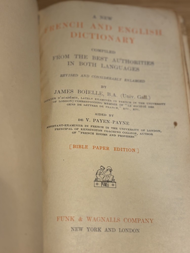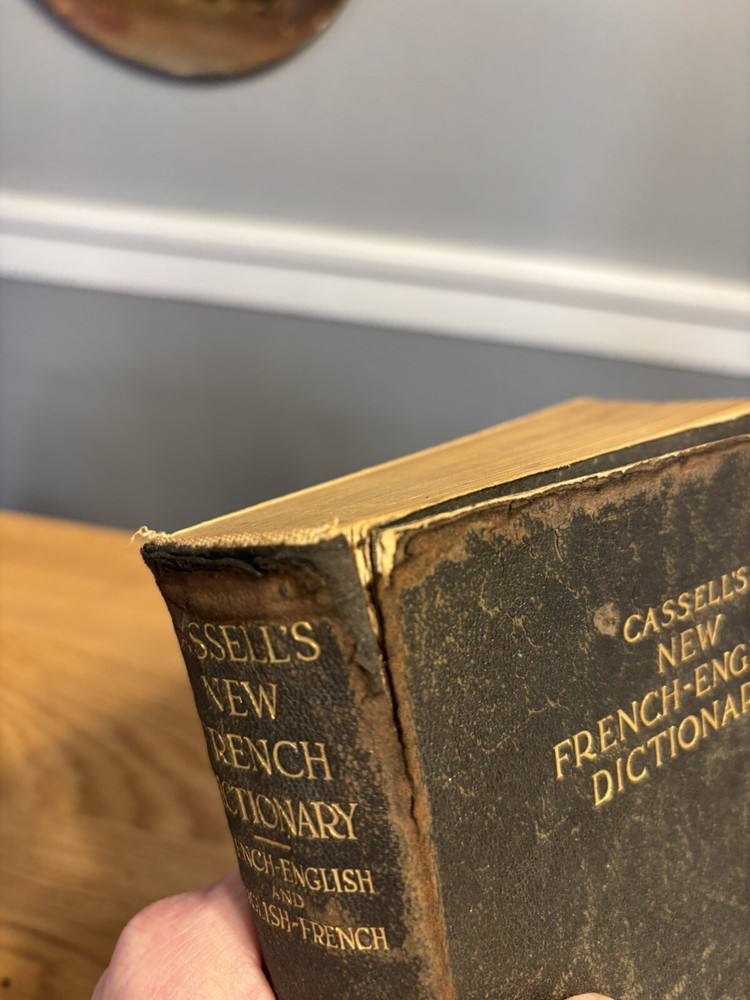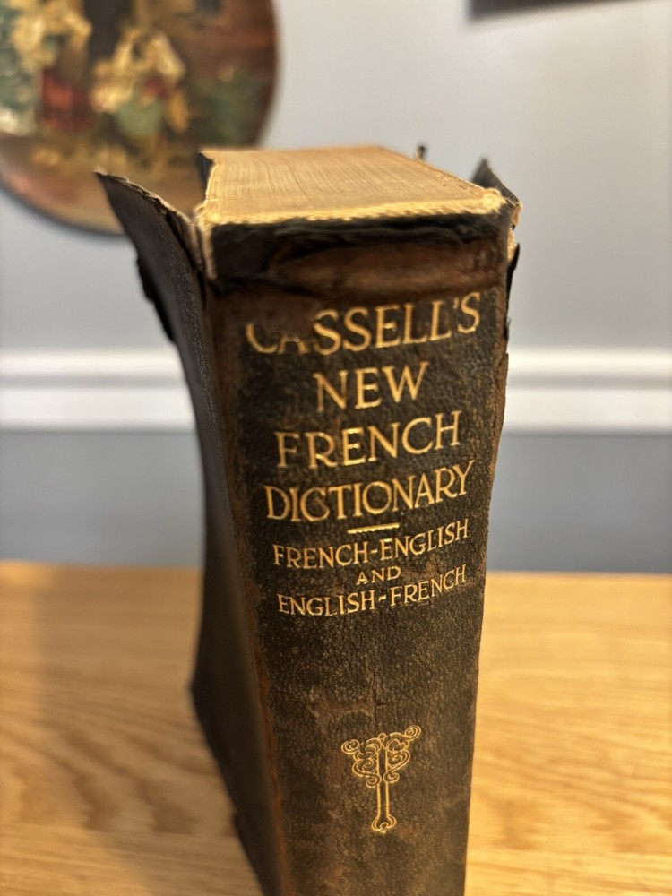Antique Cassell's French Dictionary, Funk & Wagnalls, 1903, soft leather bound. Gold detail to pages. Does have some cracking to outside cover. Inside and pages in great condition. Can still be used o...