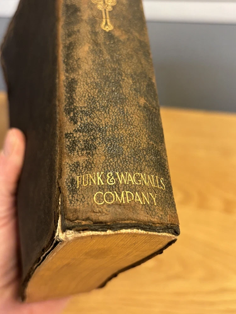 Antique Cassell's French Dictionary, Funk & Wagnalls, 1903, soft leather bound. Gold detail to pages. Does have some cracking to outside cover. Inside and pages in great condition. Can still be used or as decor Shipped via media mail