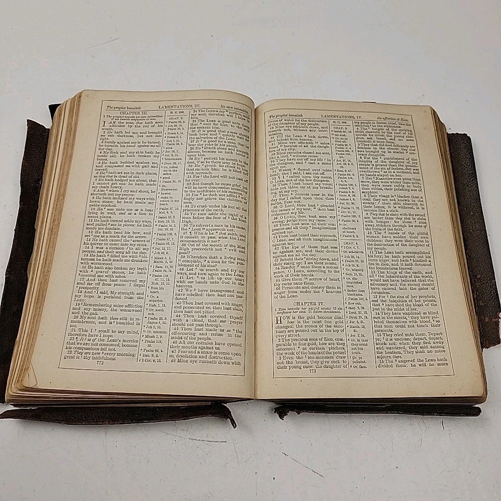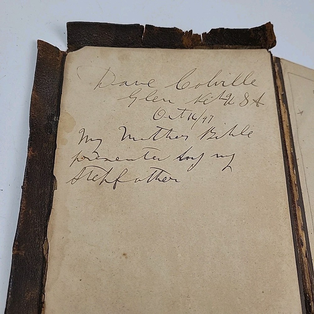 This antique Collins Minion Reference Bible is a fascinating piece of history! Despite its worn condition, typical for its age, it carries incredible charm with handwritten inscriptions dating back to 1897. The included letters and ephemera add a personal touch, making it feel like a treasured family heirloom. Perfect for collectors who appreciate vintage religious texts with a story to tell.