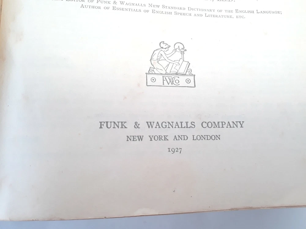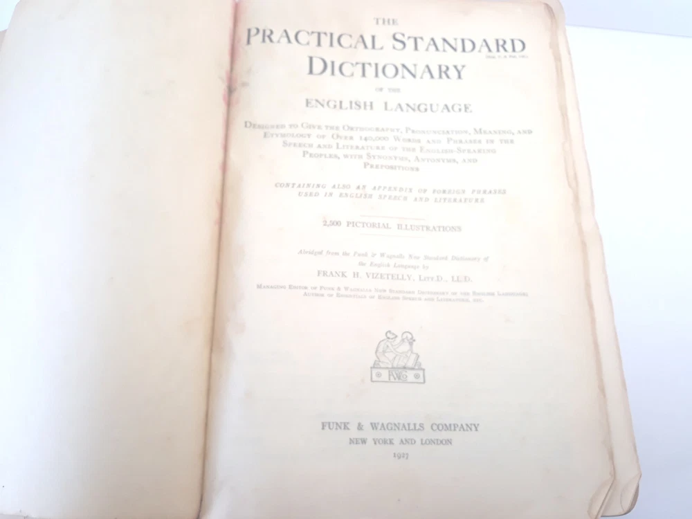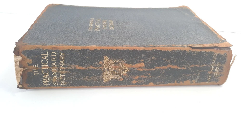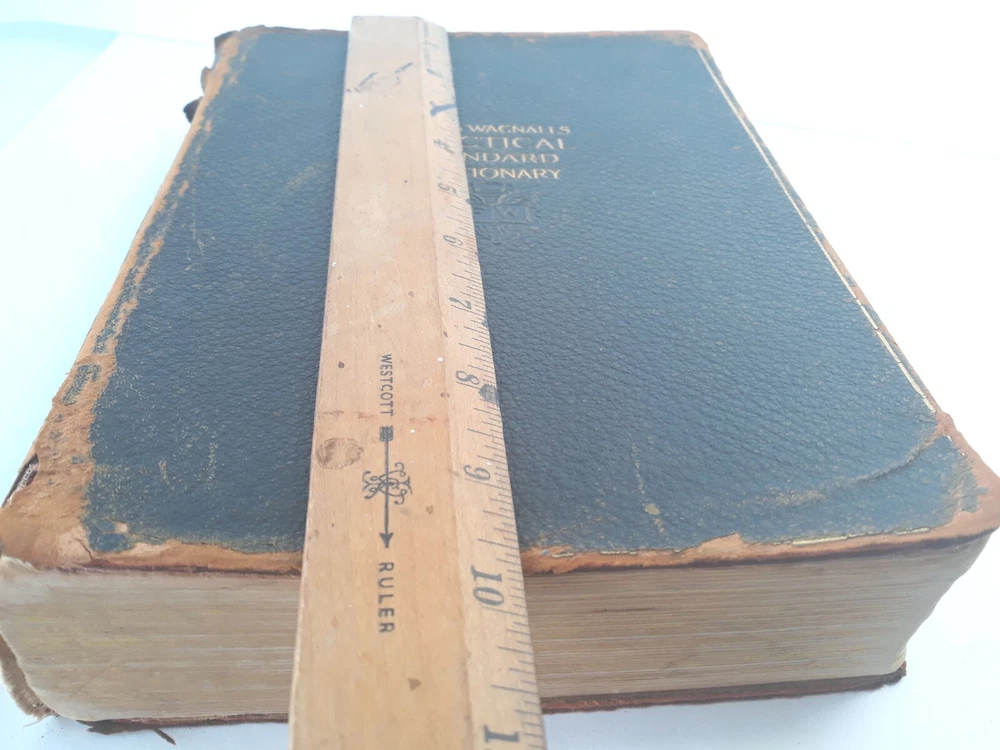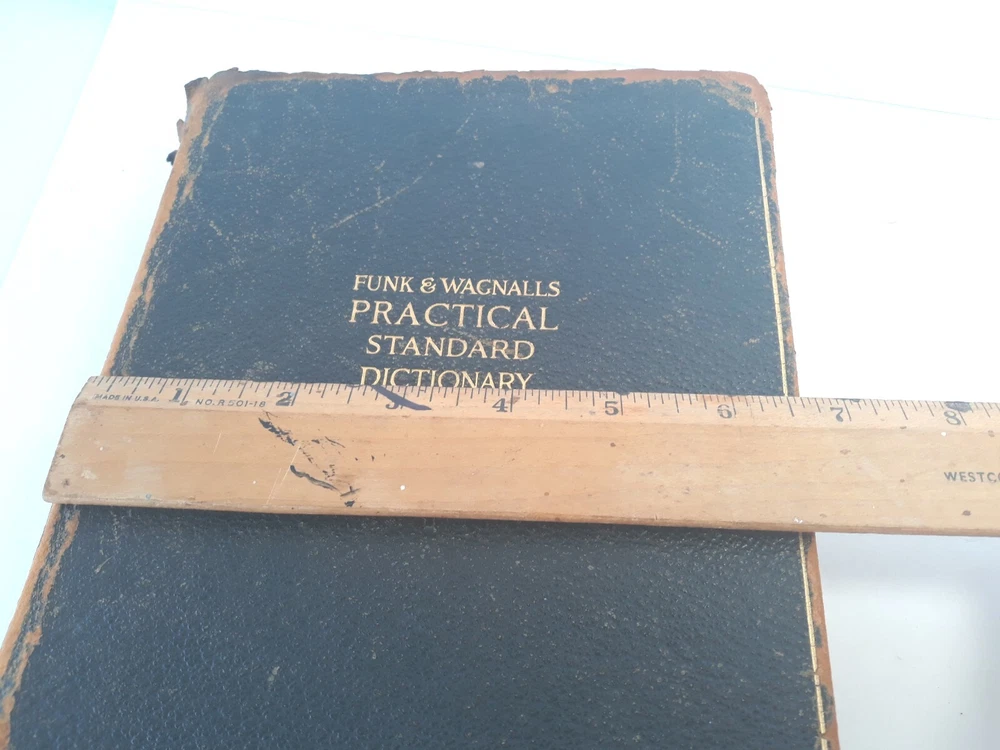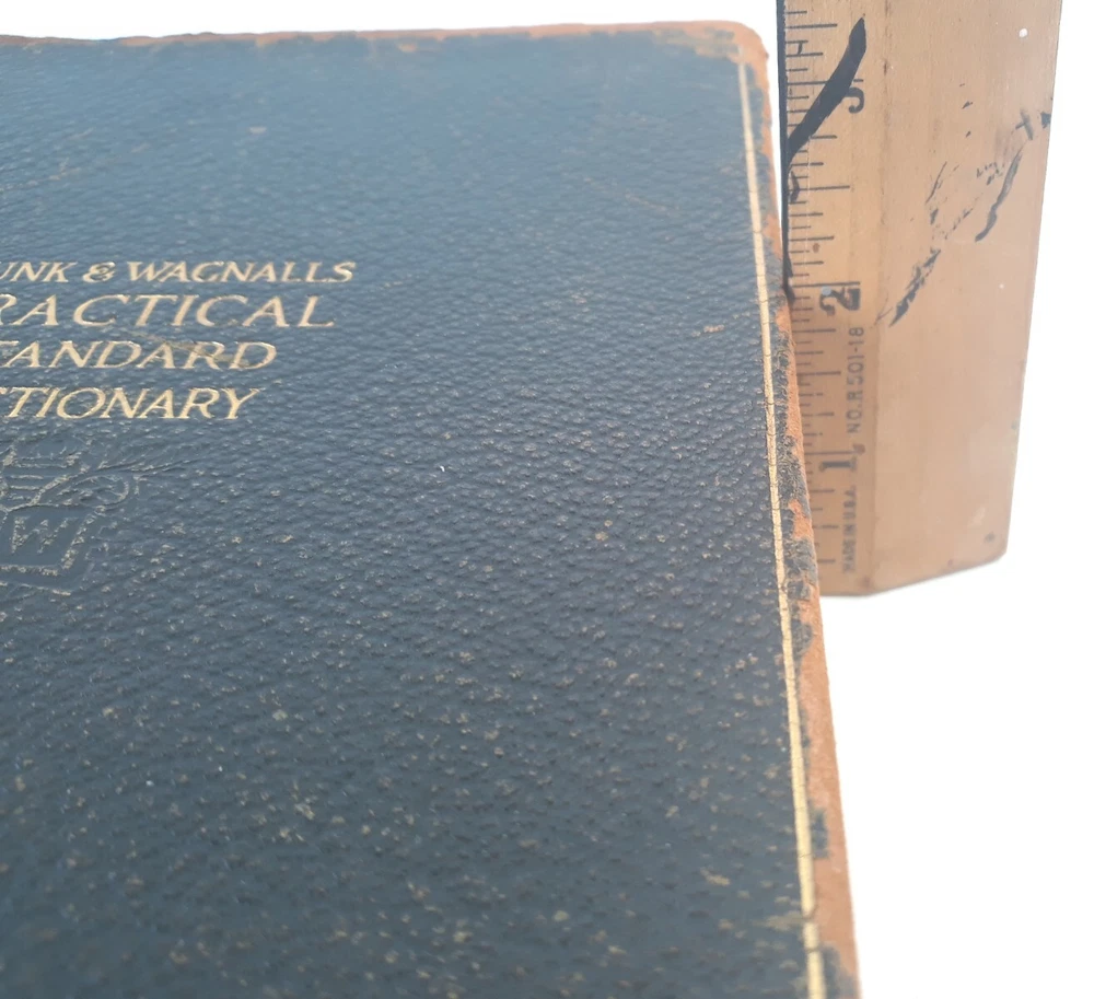 Antique Dictionary Funk & Wagnall's Practical Standard 1927 Leather Illustrated Inscribed and dated 1927, see pictures Tabbed PLEASE NOTE: most letters worn off on tabs PLEASE NOTE: leather front and back covers show signs of age, worn down particularly at outer binding and around edges, see pictures. Pages are intact as well as inner binding. Pre-owned item Will combine shipping on multiple orders Shipped from smoke free environment Fast shipper!