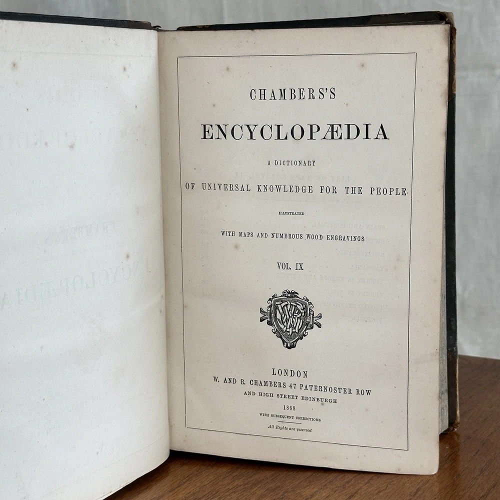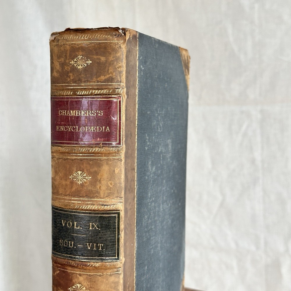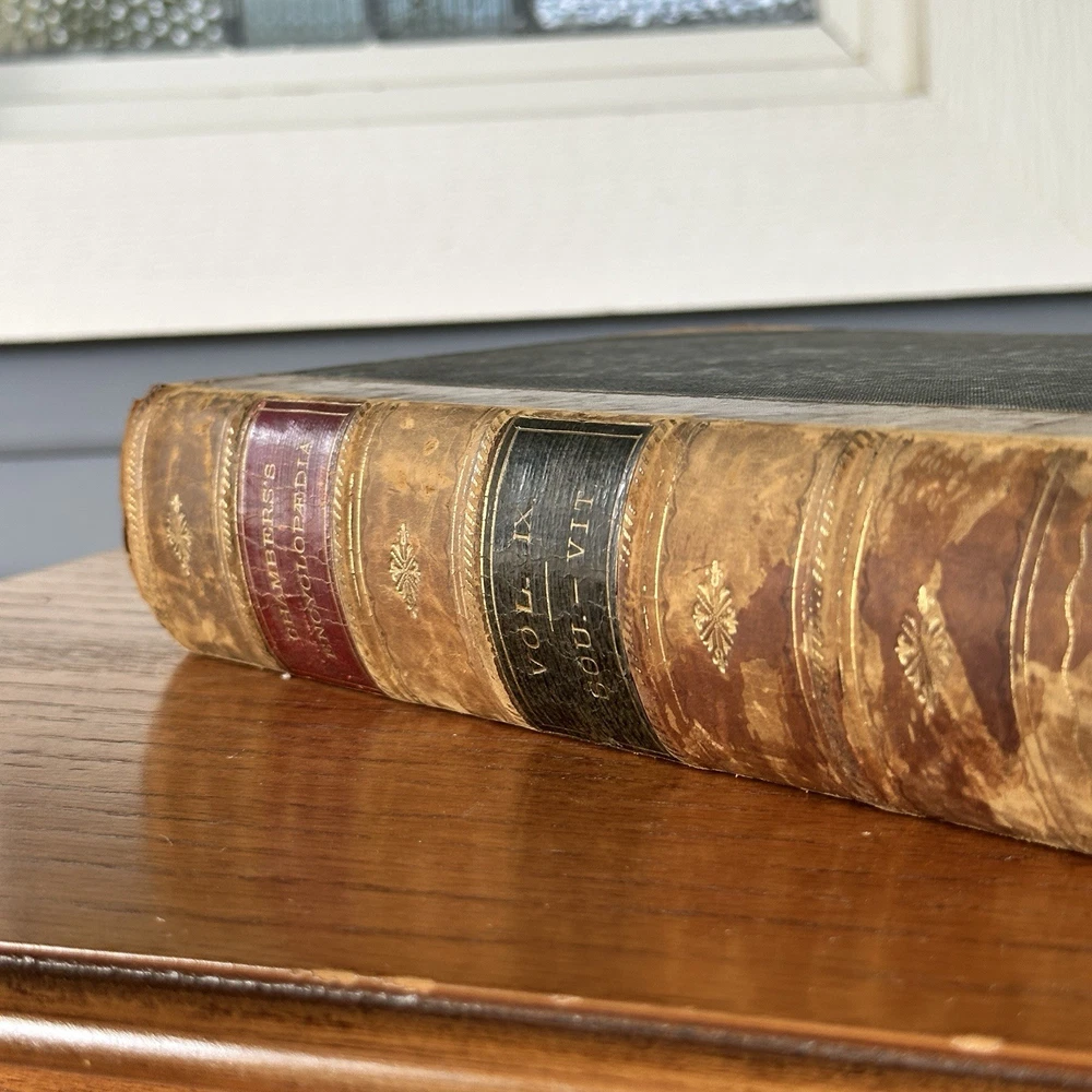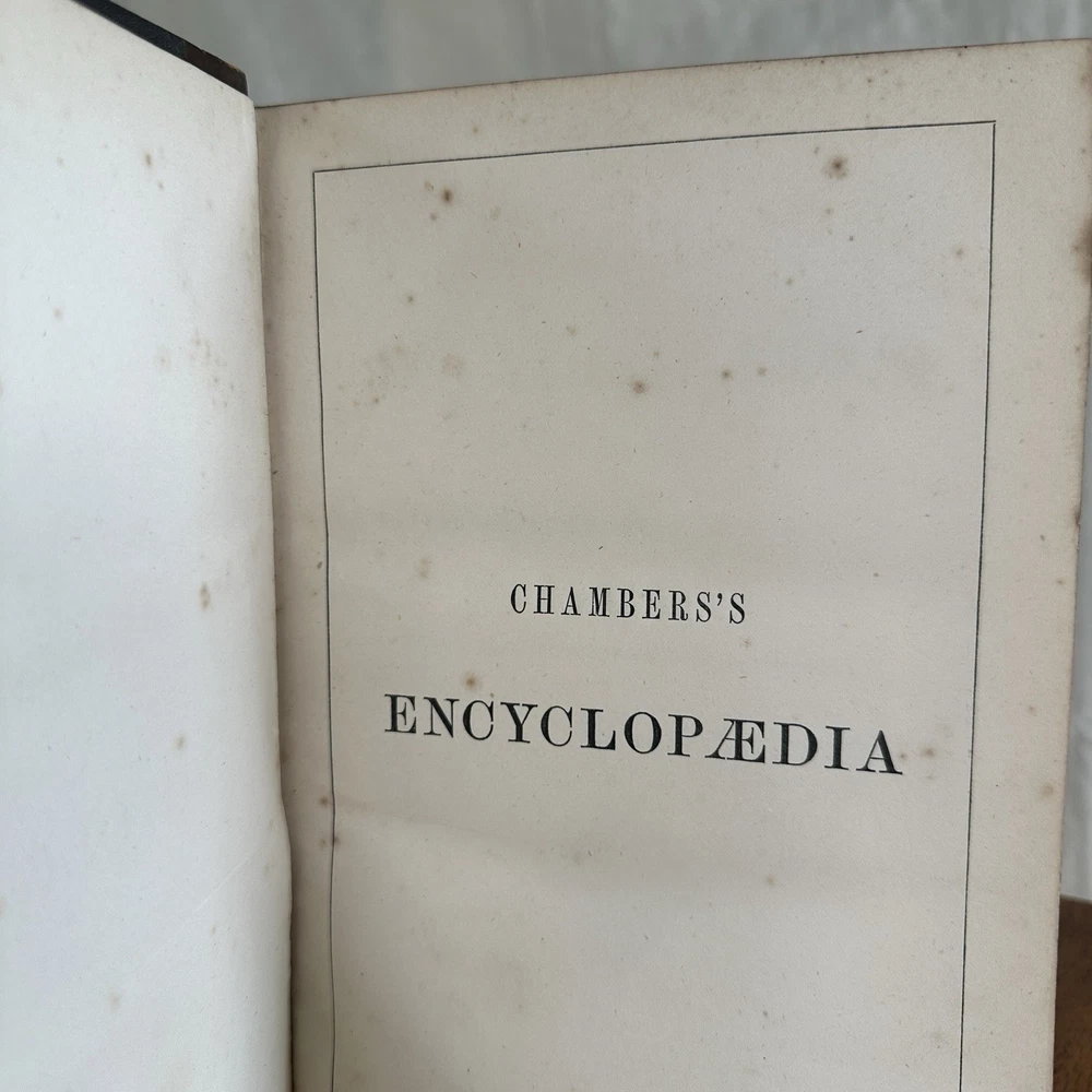 This antique leather-bound book from 1868 is a treasure trove of knowledge. Written by Robert Chambers, it is a comprehensive encyclopedia that covers a wide range of topics, from literature and science to history and culture. With its beautiful leather binding and illustrations, this book is not only a valuable reference but also a work of art. Whether you are a collector or simply someone who appreciates the beauty and practicality of antique books, this Chambers Encyclopedia is sure to impress. Its pages are a testament to the knowledge and expertise of the era, making it a fascinating read and a valuable addition to any library.