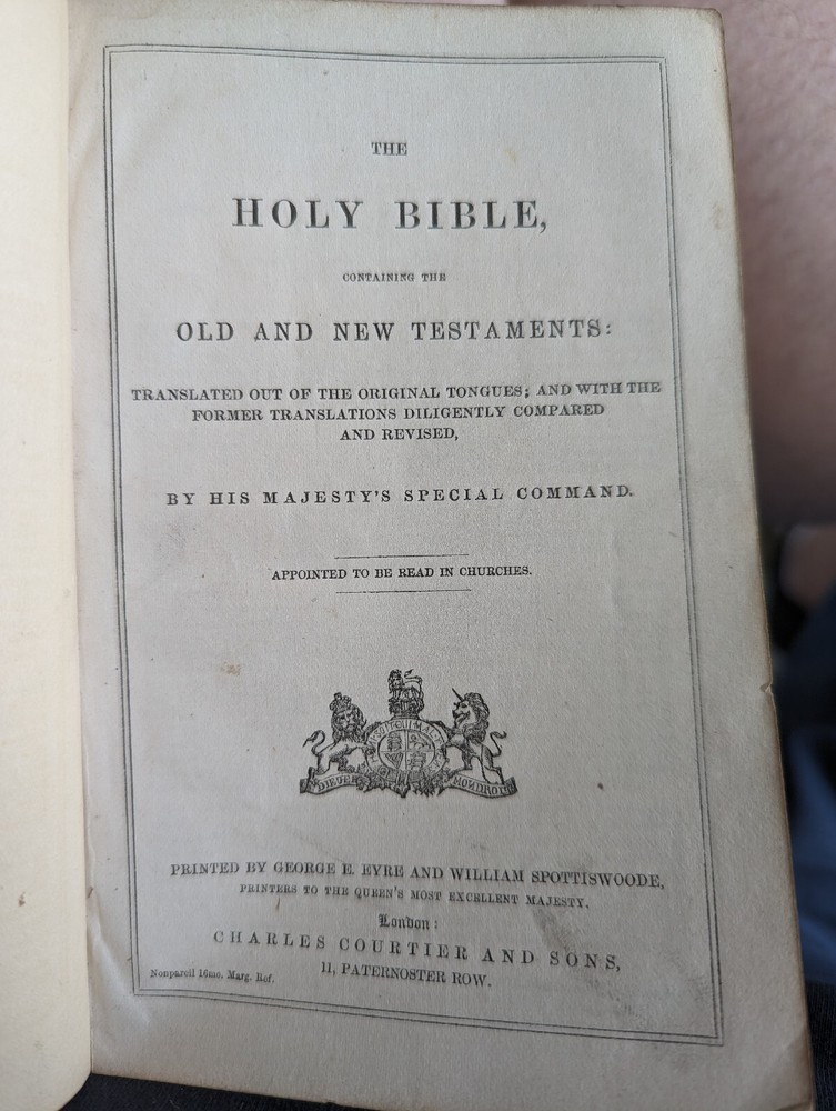 Antique HOLY BIBLE George Eyre William Spottiswoode Leather Gilt references maps. 2...