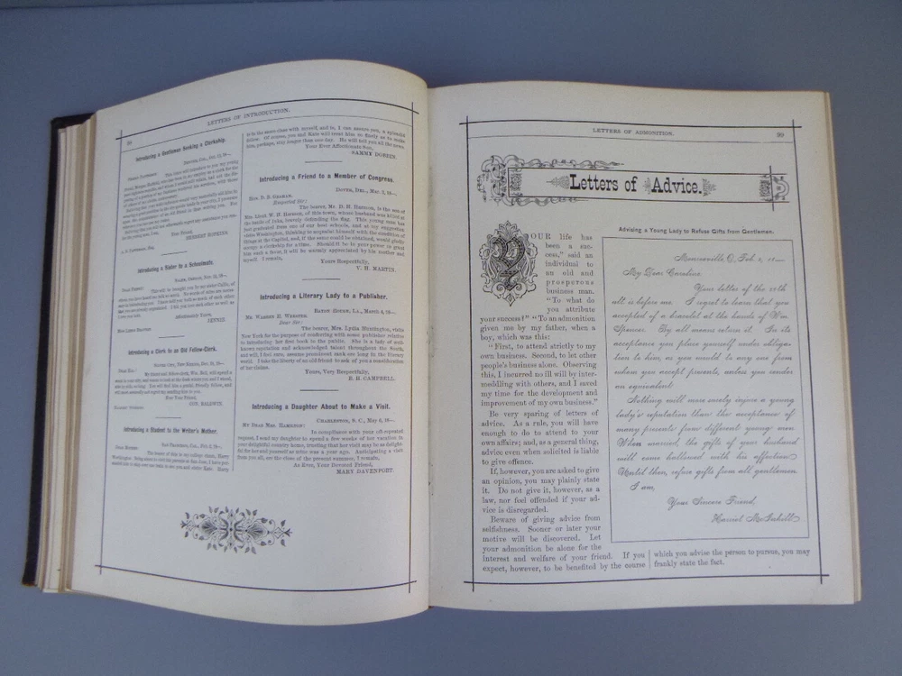 Antique Hill's Manual Social & Business Forms Thos Hill 1895 approx 10 in x 9 in 581 pages, gold gilt edges good with wear to cover/binding, age darkening to pages, light soil marks, (no writing) tear...